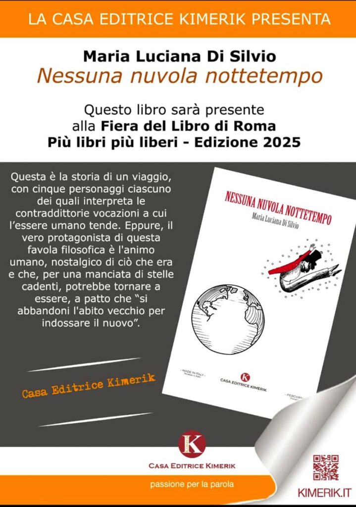 «Nessuna nuvola nottetempo è un romanzo che non pretende di darci formule, ma ci accompagna nel punto in cui le scelte diventano forma della vita – spiega a Chiaro Quotidiano, Khamis – Ho conosciuto Maria Luciana perché ha partecipato al percorso formativo sulla resilienza non come parola alla moda, ma come pratica concreta, quotidiana, allenabile. Mi colpì subito il suo modo di stare in aula: non prendeva appunti per collezionare concetti, faceva reagire le idee con la vita, lasciando che i contenuti si depositassero e diventassero decisioni. Non cercava la manciata di stelle da esibire: cercava l’essenziale che sostiene. Il libro mette in scena, con la leggerezza controllata di una favola contemporanea, cinque figure che a poco a poco riconosciamo come voci interne. Mi piace immaginare il libro come un passaggio d’abiti. Indossiamo ruoli, ci calzano per un po’, poi stringono o si slabbrano. Cambiare abito non è capriccio: è manutenzione dell’identità». [LEGGI]