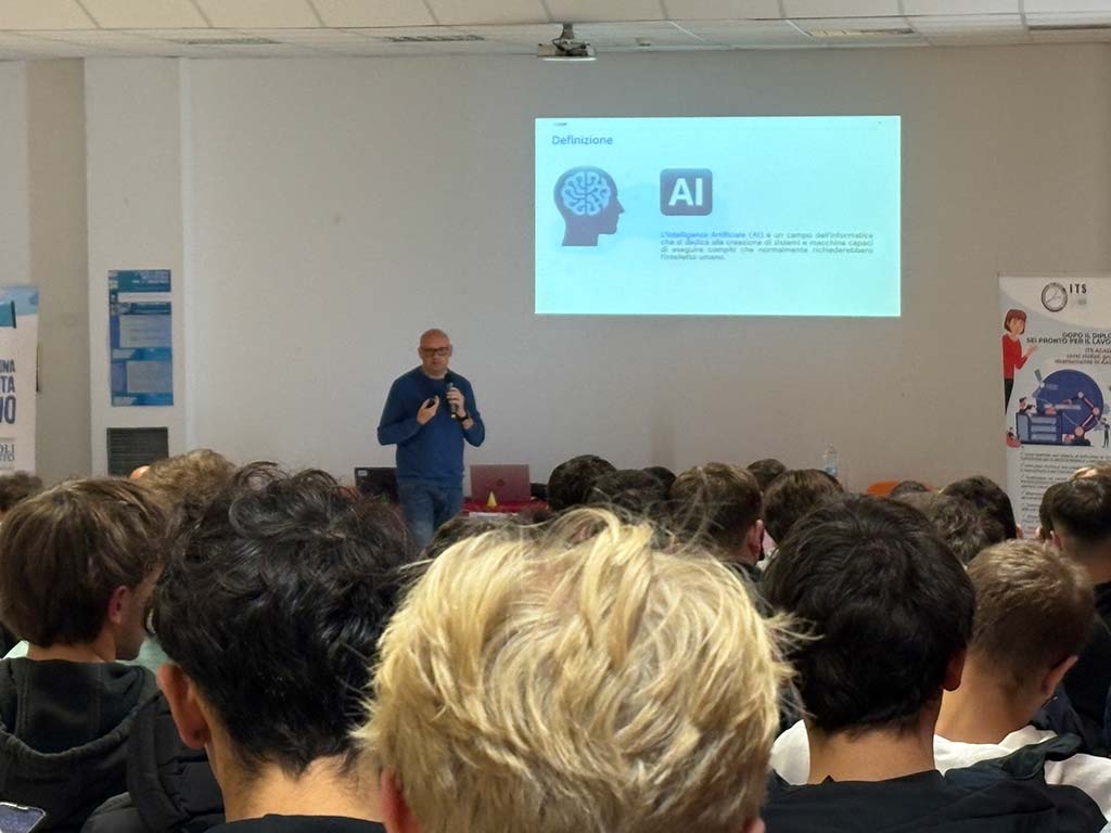 Dopo la registrazione e i saluti istituzionali della dirigente dell’istituto Annarosa Costantini, dell’assessora regionale alle Attività produttive, Ricerca industriale e Lavoro Tiziana Magnacca e di Giuseppe Ranalli (Its Academy – Polo Automotive), il programma del workshop è entrato nel vivo con un’introduzione sui fondamenti dell’Intelligenza Artificiale e ha guidato gli studenti attraverso i concetti chiave dell’AI industriale: dalla distinzione tra Machine Learning, Deep Learning, GenAI e Agentic AI, al ciclo di vita di un progetto AI, fino all’analisi di casi reali in produzione, logistica, qualità e sicurezza. Particolare attenzione è stata dedicata alle applicazioni dell’AI generativa e nel corso della mattinata sono stati presentati numerosi use case di immediata rilevanza per il settore: ottimizzazione di linee produttive, rilevamento di anomalie nei sensori, classificazione dei difetti visivi, riconoscimento automatico di imperfezioni meccaniche e generazione di report tecnici.