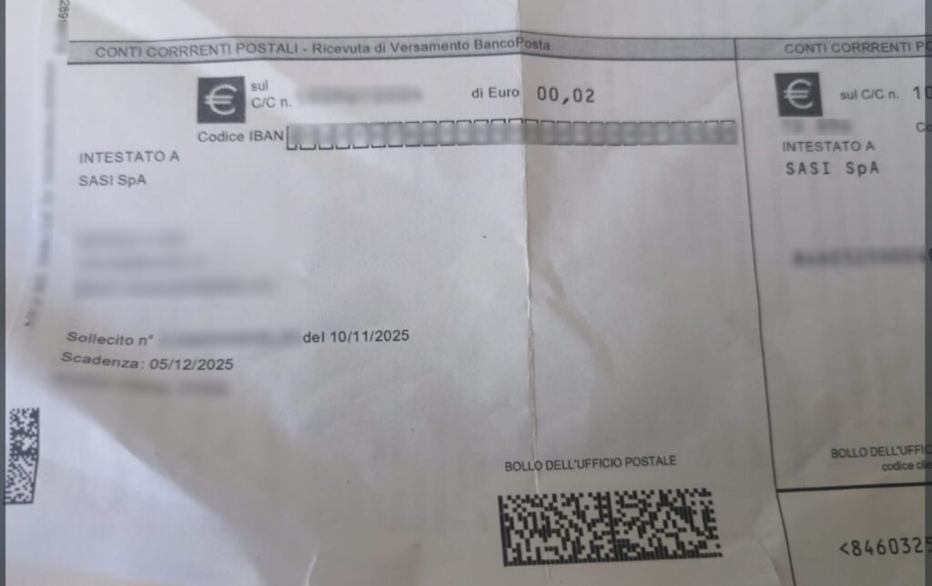 C’è chi riceve bollette salate e chi, invece, viene chiamato a rispondere di un debito da due centesimi. È successo a Vasto, dove un lettore di Chiaro Quotidiano ha ricevuto dalla Sasi Spa una bolletta dell’acqua intestata a un suo parente deceduto da tempo. Importo dovuto: 0,02 euro.