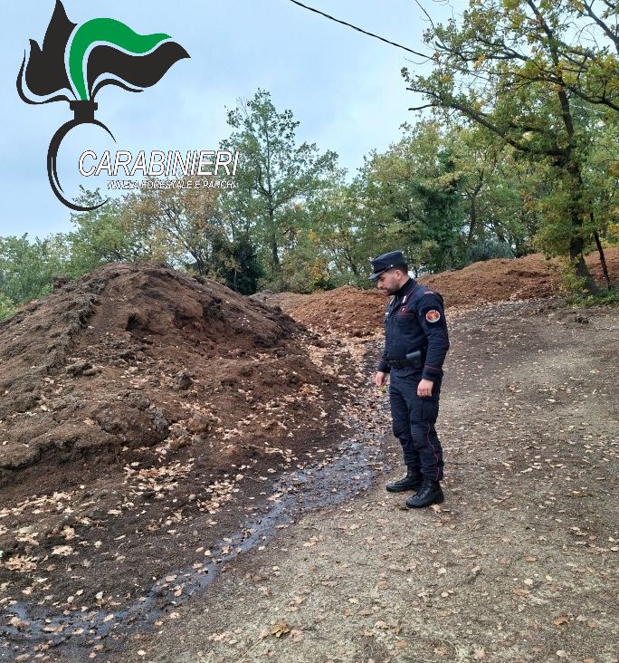 All’interno di un opificio i Forestali hanno trovato 32 big bags contenenti circa 30.000 chilogrammi di fanghi di lavorazione, stoccati oltre i limiti temporali consentiti e senza il corretto smaltimento. In un’altra area sono state rinvenute sanse esauste abbandonate su una superficie di 1.500 metri quadrati, configurando un’ulteriore violazione del Testo unico ambientale.