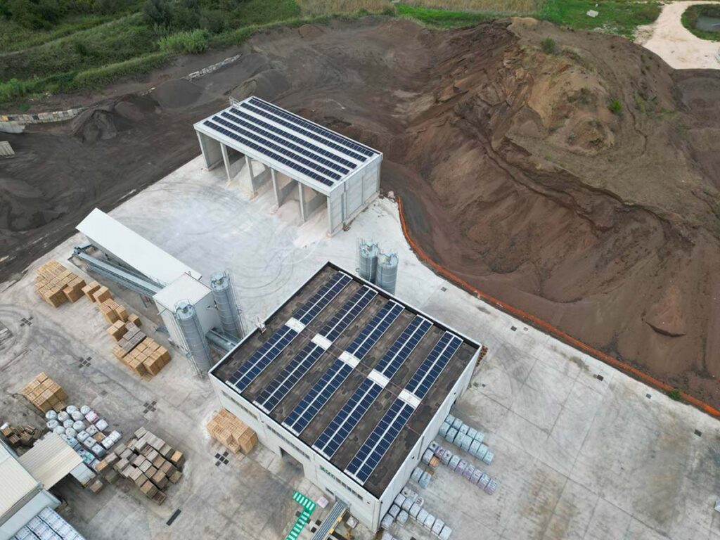 Il sistema è distribuito su tre tetti principali: sul capannone esistente più grande, con l’installazione di una nuova copertura; sulla copertura del nuovo impianto produttivo dei predosati; sul capannone di stoccaggio inerti. È stata inoltre realizzata una nuova cabina elettrica di consegna, per la connessione dell’impianto alla rete. Quasi il 98% dell’energia elettrica prodotta è destinata all’autoconsumo, mentre, durante le chiusure tecniche l’energia sarà immessa in rete.