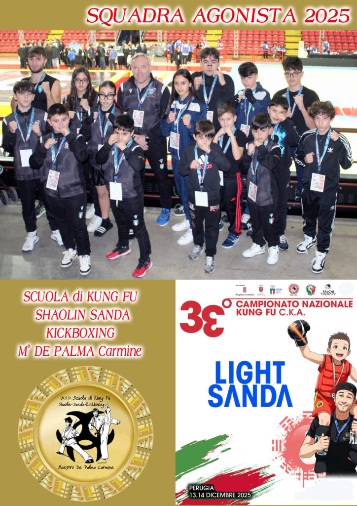 Brillanti risultati al Campionato Nazionale di Kung Fu Sanda, andato in scena a Perugia nello scorso fine settimana, sabato 13 e domenica 14 dicembre 2025. Gli atleti della Scuola di Kung Fu del maestro Carmine De Palma hanno conquistato complessivamente 17 medaglie, tra ori e argenti.
