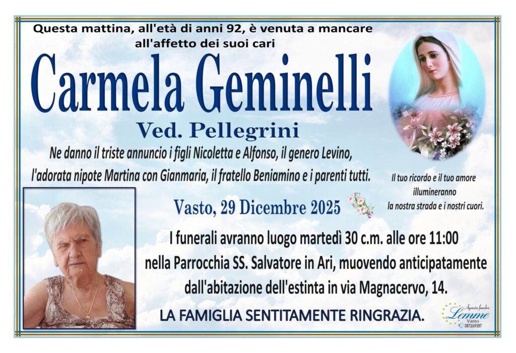 <!-- wp:image {"id":234063,"sizeSlug":"large","linkDestination":"none","align":"center"} --> <figure class="wp-block-image aligncenter size-large"><img src="https://chiaroquotidiano.it/wp-content/uploads/2025/12/geminelli-carmela-1024x700.jpg" alt="" class="wp-image-234063"/></figure> <!-- /wp:image -->