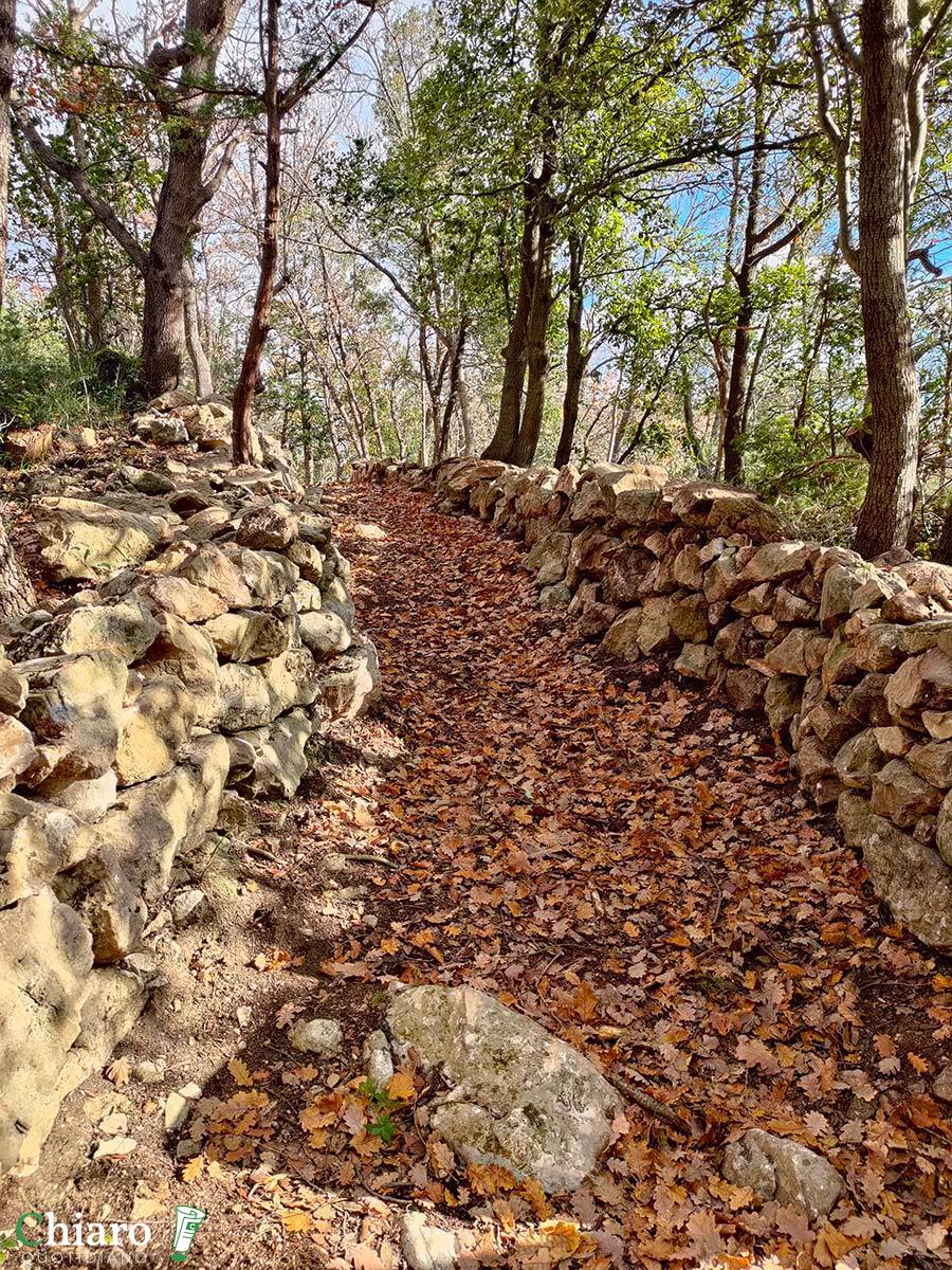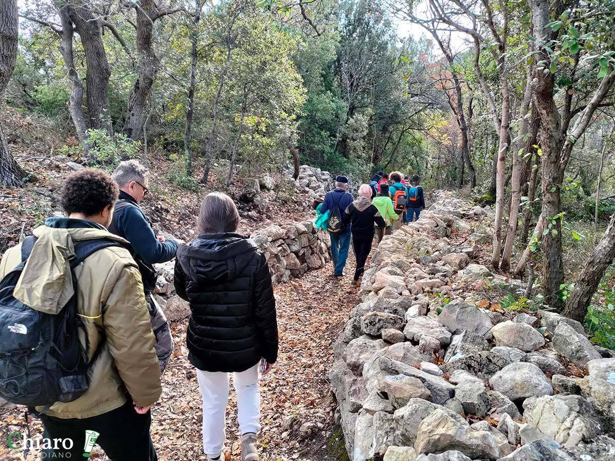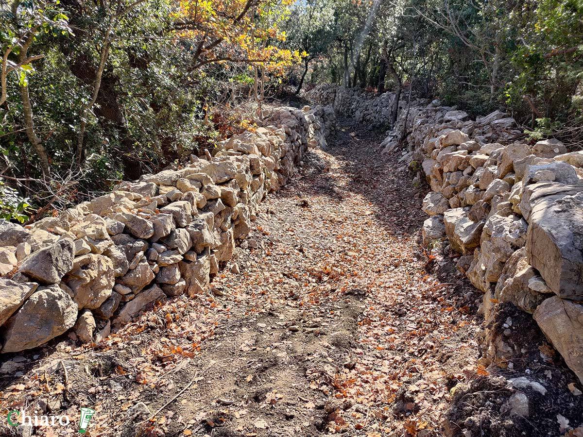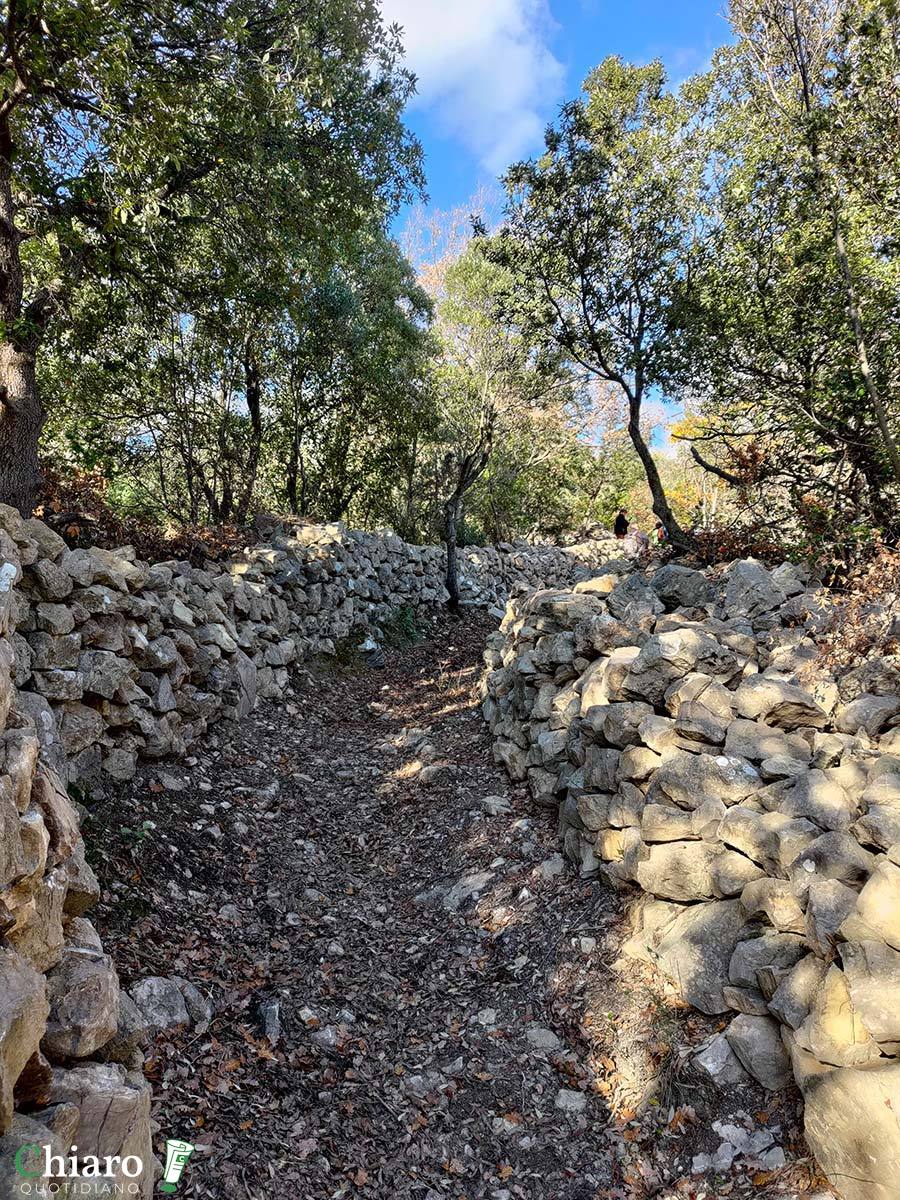 I muretti a secco sono anche testimoni del tempo e del destino delle aree interne. Con il progressivo spopolamento e abbandono delle terre, sono venuti meno quegli agricoltori che ne curavano la manutenzione, così, a causa degli agenti atmosferici e anche dell’azione degli animali (cinghiali soprattutto), anno dopo anno, sono crollati. Prima che i volontari si mettessero al lavoro, al posto degli ordinati sentieri odierni c’erano impraticabili distese di pietre e massi.