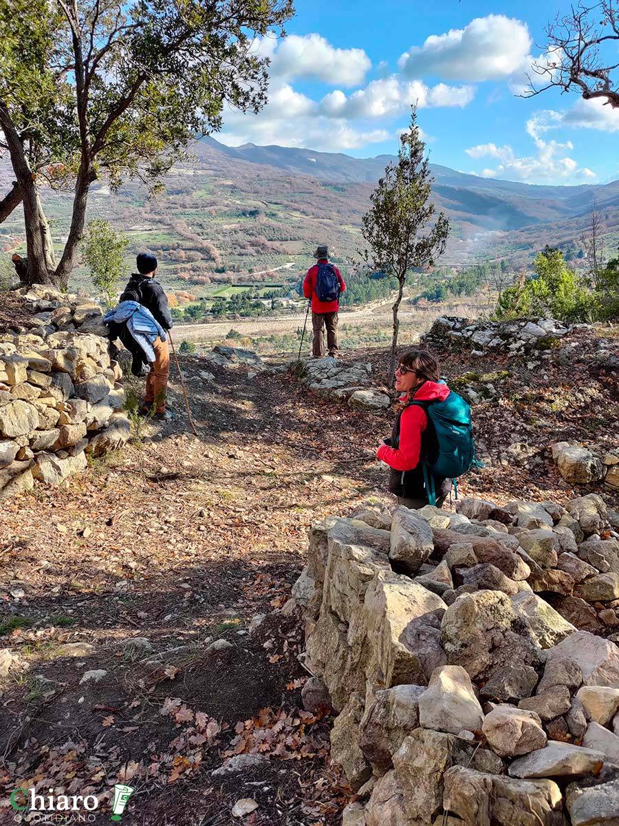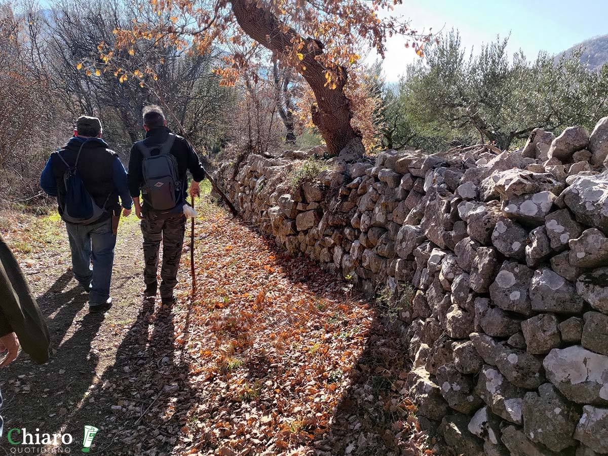 La via dei muretti a secco, il 30 dicembre scorso, è stata al centro di un’escursione (da San Giovanni Lipioni a Celenza sul Trigno, guidata da Margherita Fochesato), organizzata dal portale di promozione turistica Visti Monti Frentani, prima occasione per svelarla al pubblico. Nei mesi scorsi un gruppo di volontari capitanato da Elio Di Pardo si è messo al lavoro per ripristinare quelle stradine in passato usate dai contadini di Celenza sul Trigno. «Questi muretti sono stati realizzati dagli agricoltori con le pietre e i massi rimossi dai campi, servivano sia per delimitare le proprietà, sia per impedire gli attraversamenti da parte degli animali. Piano piano, quindi, hanno tracciato gli stessi sentieri». Un’epoca – che oggi sembra lontanissima – in cui quotidianamente si andava a lavorare la terra a piedi o in sella agli asini.