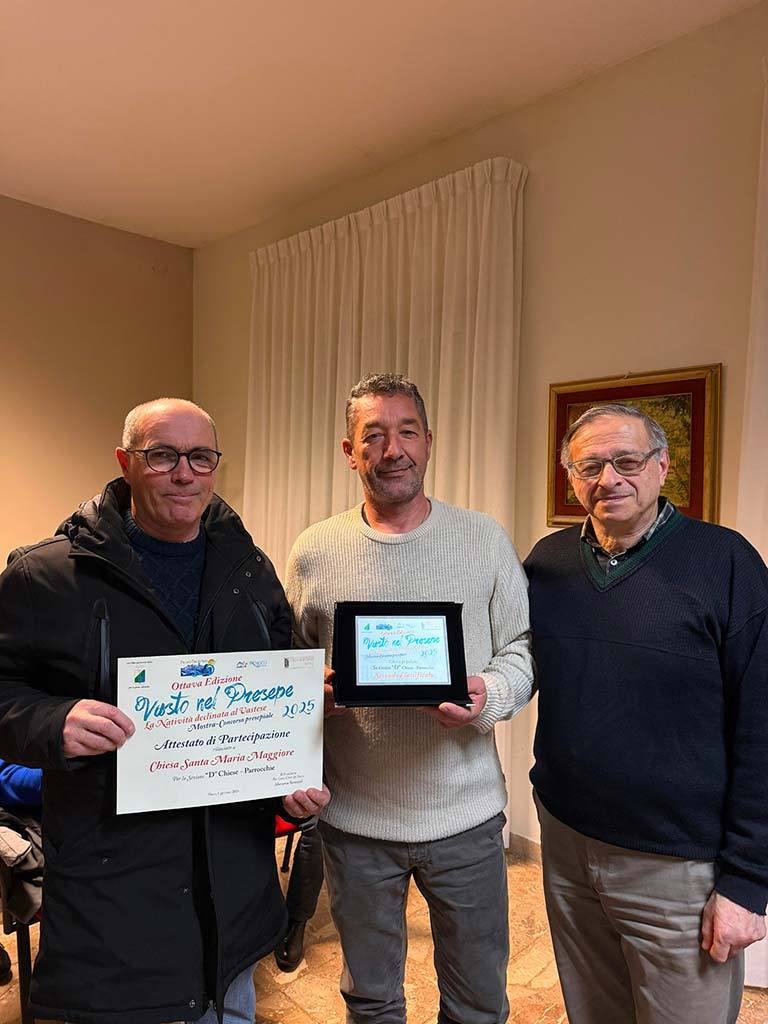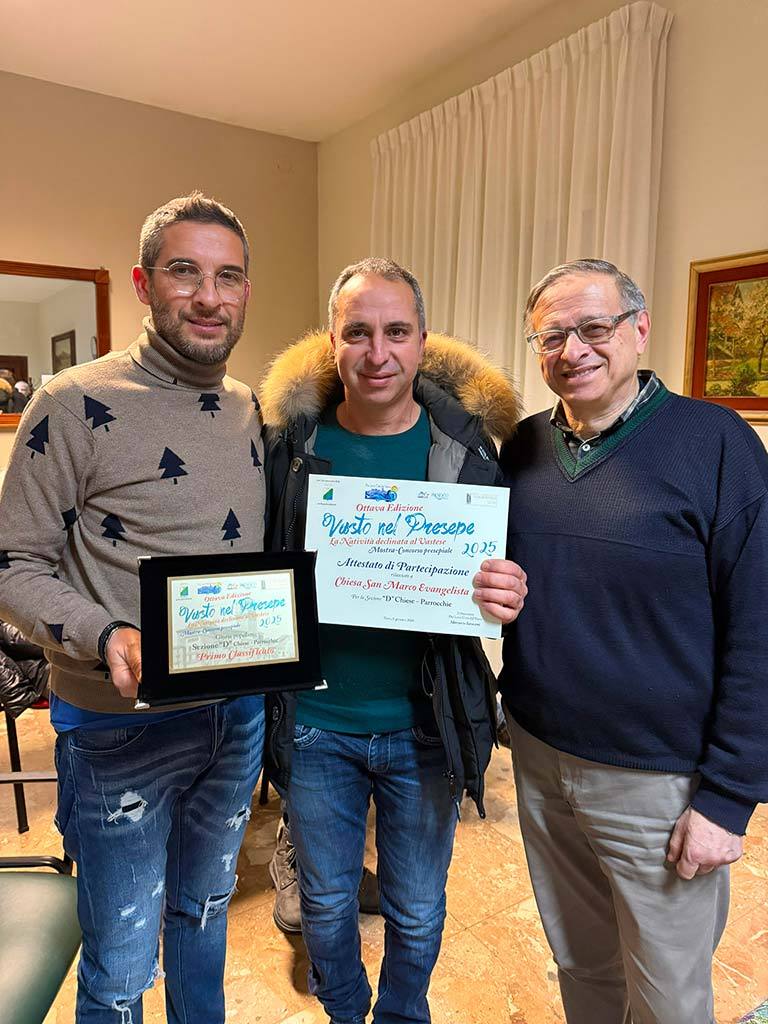 La Pro Loco “Città del Vasto” esprime «profonda soddisfazione per il successo dell’iniziativa, che si conferma non solo una mostra-concorso, ma un vero e proprio momento di condivisione culturale e spirituale, capace di valorizzare il presepe. Un sentito ringraziamento va a tutti i partecipanti, alle scuole, alle parrocchie, alle associazioni coinvolte e a quanti, con la loro presenza e il loro voto, hanno contribuito a rendere anche questa edizione un segno autentico del Natale vastese e della sua comunità».