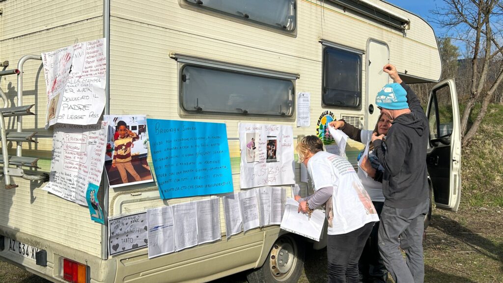 È arrivato nel primo pomeriggio a Palmoli il camper dei neorurali per sostenere Nathan e Catherine. Sono in tre e, subito dopo aver parcheggiato nelle vicinanze della casa nel bosco, hanno appeso al camber una serie di cartelloni.