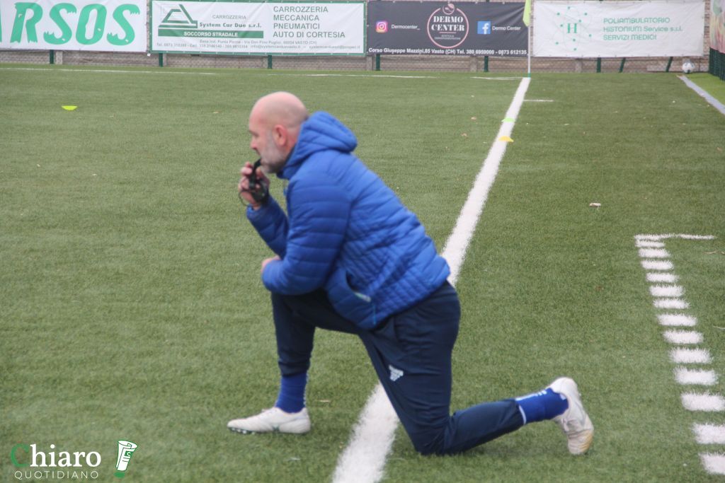 Lunedì è arrivato il secondo switch stagionale in panchina, scegliendo l’allenatore pugliese che, da ottobre, “palleggiava” tra la panchina della Pro Vasto e quella della Bacigalupo. Sei anni dopo aver centrato la salvezza con la Vastese in Serie D, da vice allenatore al fianco di Papagni, è tornato di nuovo a Vasto, da “head coah” e con un bagaglio d’esperienza maggiore. Anche perché l’Eccellenza abruzzese la conosce già avendola affrontata, sulla panchina del Casalbordino, nel 2022, da gennaio a giugno, sfiorando una salvezza (viaggiando a una media playoff) che avrebbe avuto del miracoloso.