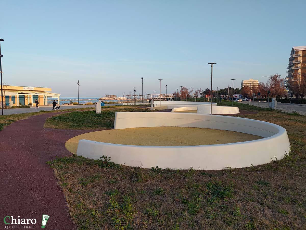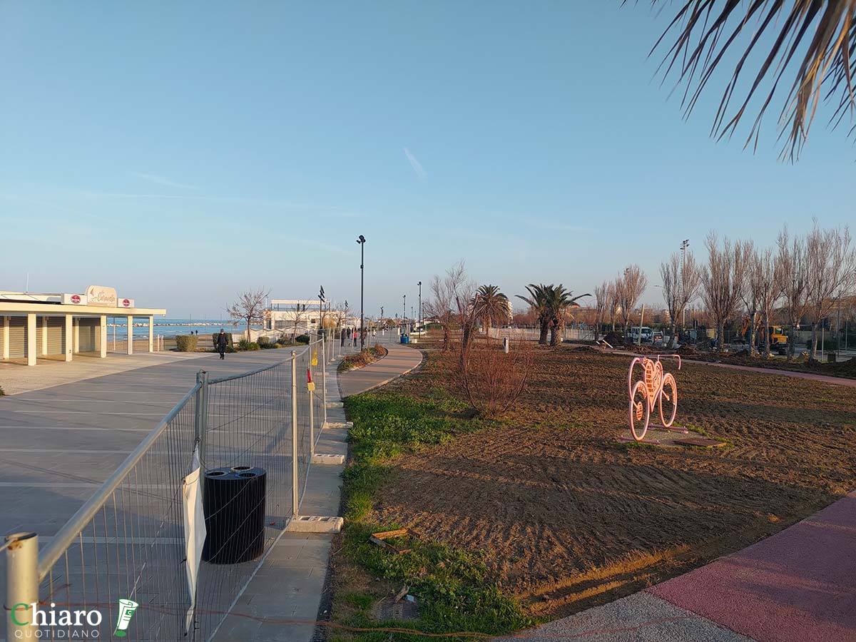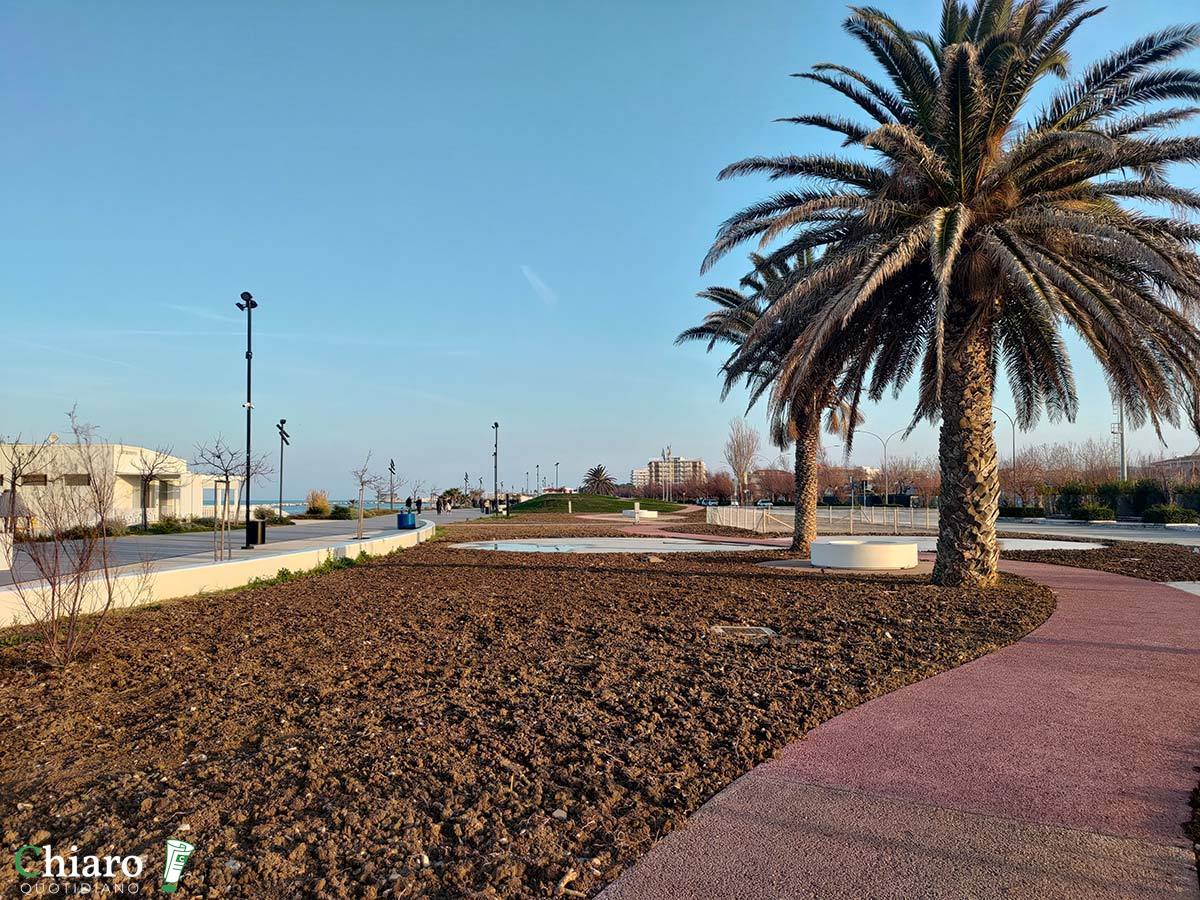 Dopo la nuova passeggiata e piazza Cristoforo Colombo, già terminate due anni fa, i lavori si sono concentrati sulle aree verdi e oggi sono in corso gli ultimi ritocchi all’altezza del lido La Caravella. I vecchi “quadranti” hanno lasciato il posto a un percorso unico che si sviluppa per aree tematiche con attrazioni e spazi attrezzati: campi di bocce, calcetto e beach volley per bambini, pareti per arrampicata, basket, un’area di sgambamento cani, fontana dinamica, area giochi (già presente in precedenza).