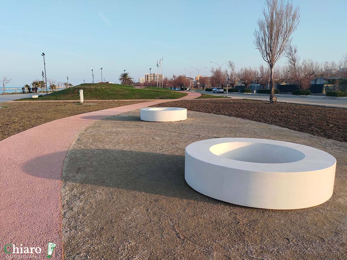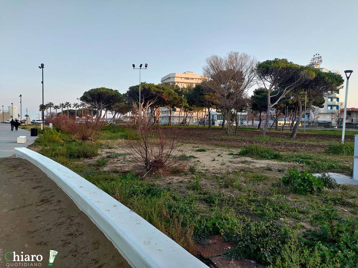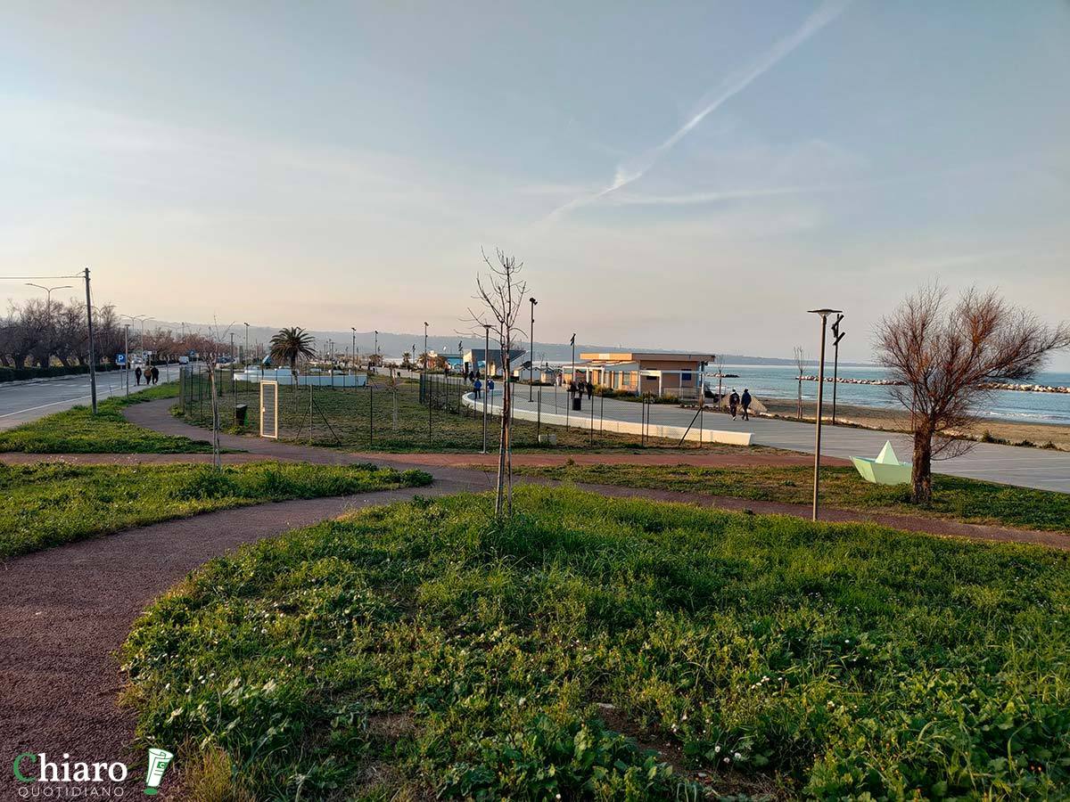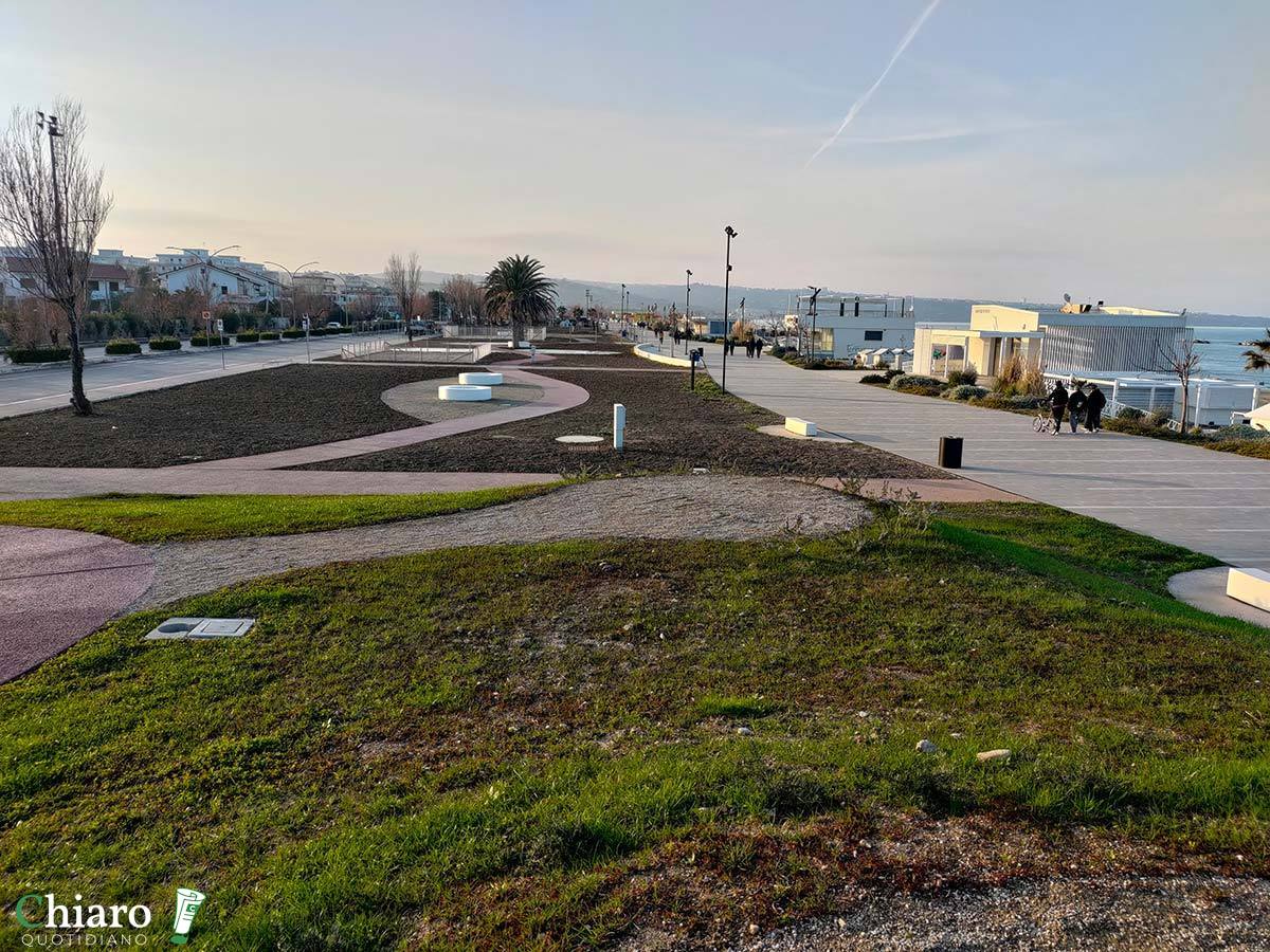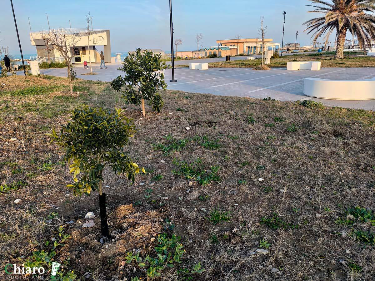 Sulle stesse aree verdi sono state realizzate anche due collinette artificiali che consentono un punto di vista panoramico del lungomare e contribuiscono a diversificare il percorso che si snoderà anche tra i numerosi alberi da frutto messi a dimora di recente. Evidente, invece, la drastica diminuzione negli ultimi anni degli alberi presenti nella pineta a sud a causa di danni da maltempo e abbattimenti.