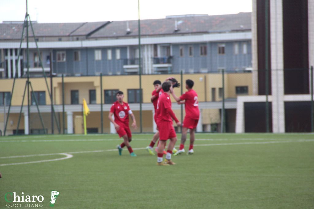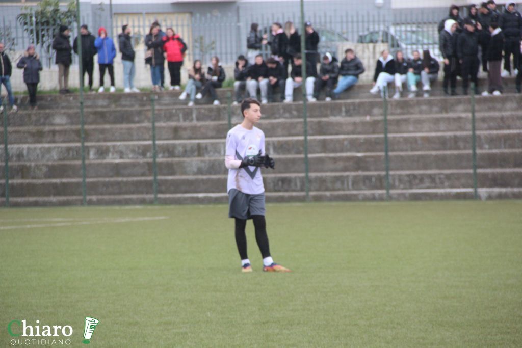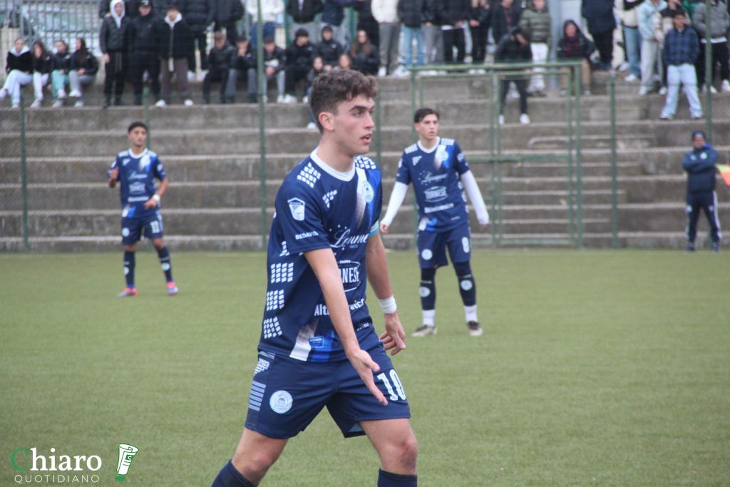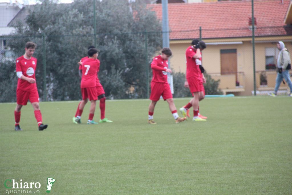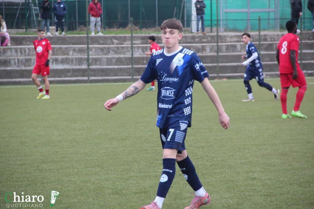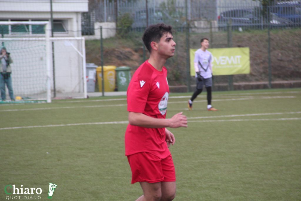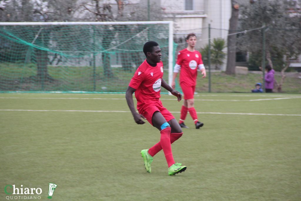 La partita – Moduli a specchi per i due allenatori, Loris Carbonelli in avanti si affida al centravanti Valentini (arrivato durante la sosta dal Roccaspinalveti) assistito dal capitano Ventrella e Colanzi. I “big” Tafili e Kone occupano la mediana completata da Cupaioli. Due 2006, quattro 2008 e cinque 2007. In porta Acquarola, davanti a lui Cela e De Santis insieme ai laterali Galante e Luciani. Sulla sponda biancazzurra Alessandro Ciccotosto sceglie il portiere Fiore, sui lati Di Tullio e Okoroji con i centrali Loreta e Giammichele. Nel cuore del gioco Prestigiacomo accompagna capitan Di Marino e Raspa, in avanti tridente “leggero” con Esposito “falso nueve” supportato da Waldi e Mastragostino. Un 2006, addirittura due 2009, tre 2007 e cinque 2008, tra questi “Lele” Mastragostino che, dopo appena trenta secondi, di testa, sblocca immediatamente il match. La Pro Vasto colpita a freddo reagisce con orgoglio e, al quindicesimo trova il pari con il 2006 Emirson Tafili che, da due passi, deposita in rete, l’assist aereo di Valentini. I biancorossi di casa spingono forte e, in poco più di sessanta secondi, tra il ventiseiesimo e il ventisettesimo cestinano due clamorose palle gol che avrebbero fatto rima con rimonta. Prima sugli sviluppi di una punizione calciata da Tafili Fiore non trattiene, da zero centimetri Ventrella colpisce clamorosamente il palo. Qualche secondo più tardi Valentini indovina lo stop ma viene ipnotizzato dall’estremo biancazzurro.