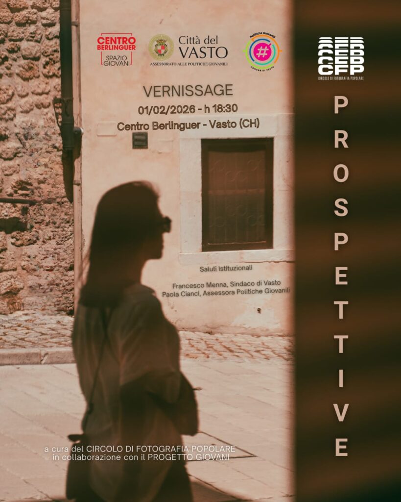 Il Cfp (Circolo di Fotografia Popolare), in collaborazione con l’assessorato alle Politiche giovanili e il progetto Giovani, inaugura Prospettive, una mostra fotografica permanente che aprirà al pubblico domenica 1° febbraio (ore 18.30) al centro “Berlinguer” di Vasto.