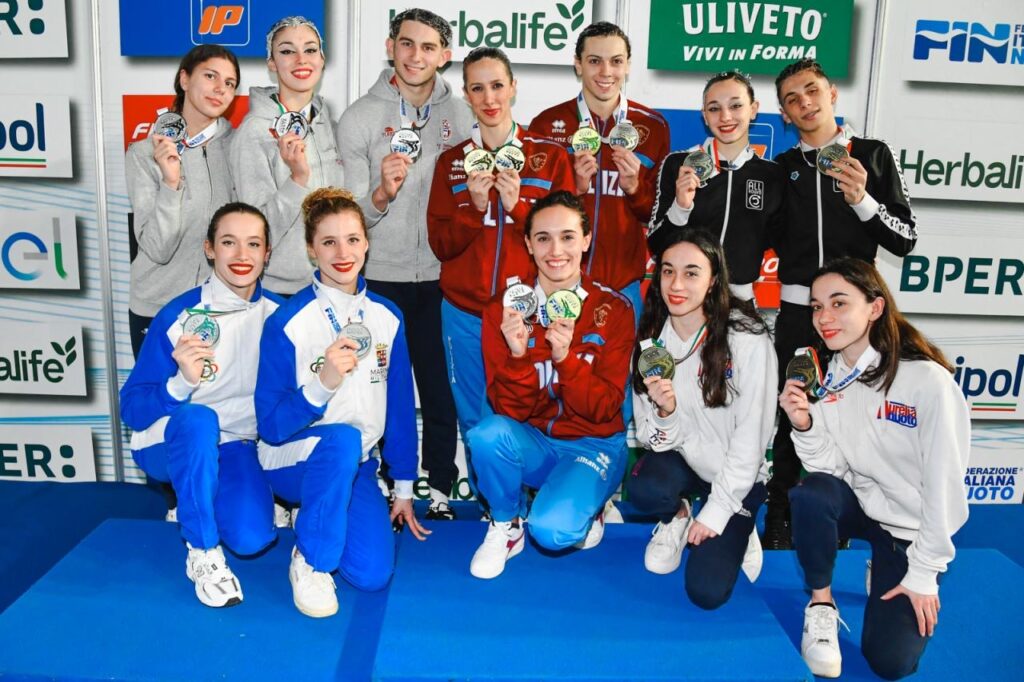 Oro alla quotata coppia Ruggiero-Piccoli, poi Macchi-Mastroianni e luccicante medaglia di bronzo al collo di Gaia e Giorgia che hanno chiuso con il punteggio di 286.9183 mettendosi alle spalle coppie che avrebbero dovuto trovare spazio in posizioni più alte.