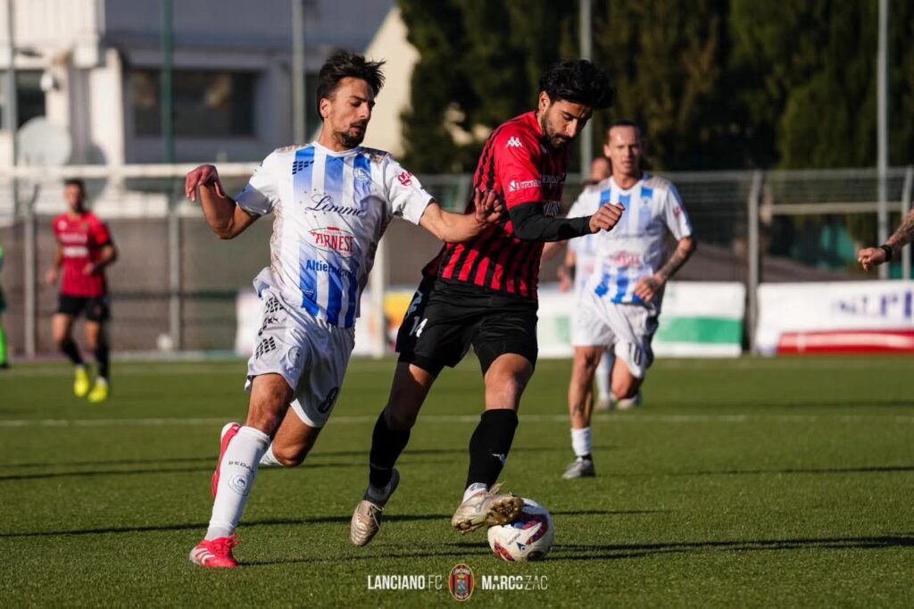 Facile da prevederlo, predominio lancianese con match sbloccato poco prima della mezzora da Santirocco bravo a raccogliere un assist di Barlafante battendo, di testa, Sciammarella. Preso il gol la Bacigalupo ha reagito colpendo il palo con Irace. A inizio ripresa i rossoneri hanno calato definitivamente la saracinesca, ancora con Santirocco (11 gol in campionato) bravo a raccogliere la respinta dell’estremo vastese. Nel finale rosso diretto per Ancinelli dopo una gomitata ai danni di De Palo.