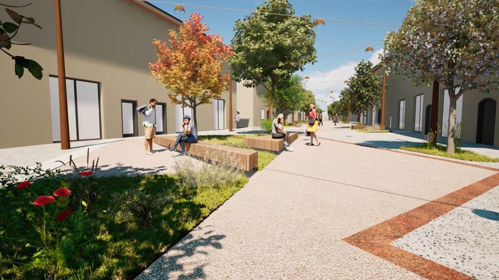 Altra nota dolente è quella dei rendering diffusi dal Comune con una via Roma difficilmente riconoscibile. L’elaborazione grafica – a differenza di quella del 2022 – non sembra calata nella strada, ma mostra edifici a un solo piano che restituiscono un’immagine complessiva lontana dalla realtà. Inoltre, hanno tutti lo stesso colore, pur non essendoci più un piano colore, invece previsto dal progetto di Longhi (basato su tonalità di bianco e blu).