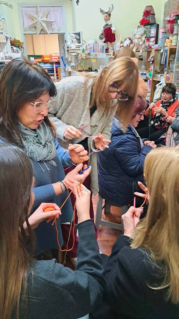 «Intrecciando catenelle, ascoltato la voce che narra le pagine di un libro un buon the in condivisione riporterà ad un tempo lento. La concentrazione, la creatività e l’emozione diventano protagoniste in un ambiente dedicato supportato da professioniste dell’uncinetto e da una professionalità pedagogica che media la relazioni nascenti. Usare uno spazio pubblico come una merceria permette di creare un luogo di scambio culturale e conoscitivo che diventa spazio di cura, terapia all’isolamento».