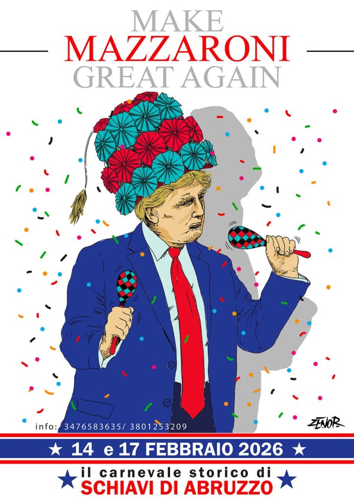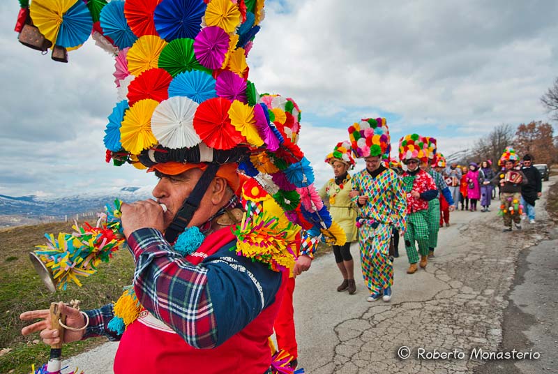 A Schiavi di Abruzzo è tutto pronto per la tradizionale festa di carnevale con i Mazzaroni (l’mazzaroun in dialetto locale) in programma il 14 e 17 febbraio. I Mazzaroni sono i giovani del paese, che indossano un caratteristico copricapo, il Cimiero (C’mir) di varie forme, ricoperto di colorati fiori di carta e nastri (zagarelle). Il gruppo è capeggiato dal Pulcinella, figura centrale del carnevale schiavese, contraddistinto dalla presenza della “mazza” (sagliocca), simbolo di potere, di semidivinità e di rinnovamento vegetale.