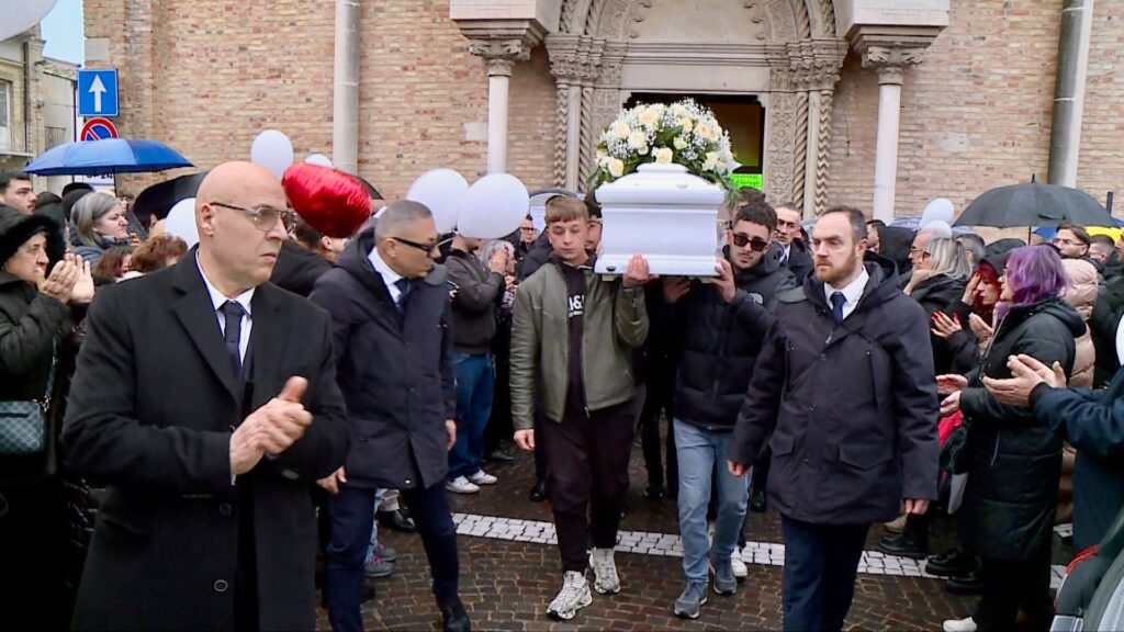 San Salvo si è fermata per l’ultimo saluto a un ragazzo conosciuto e benvoluto. Volti rigati dalle lacrime, maglie bianconere tra la folla, abbracci lunghi sul sagrato.