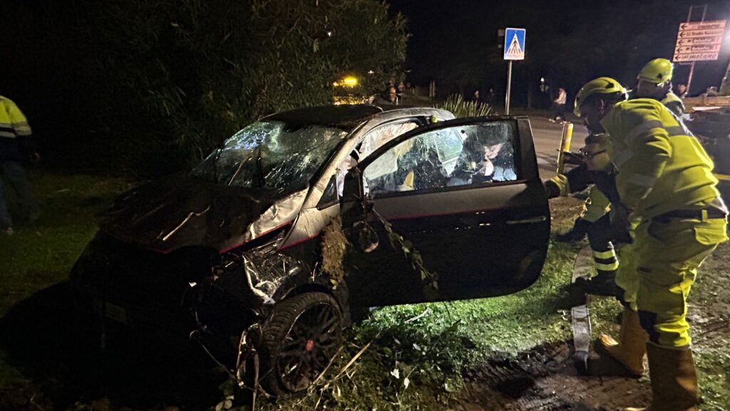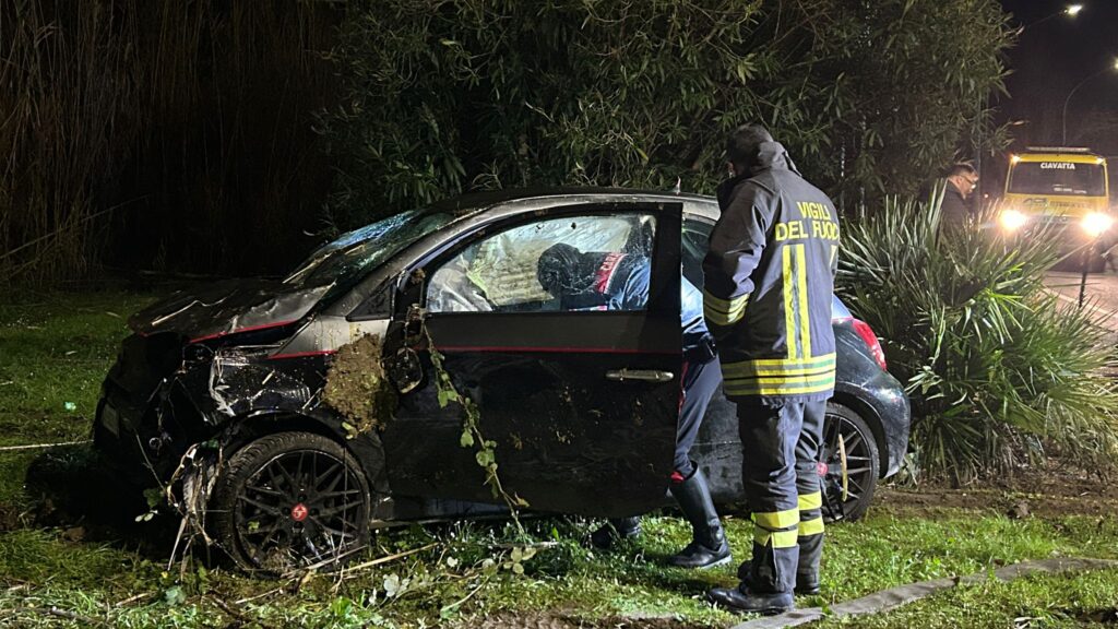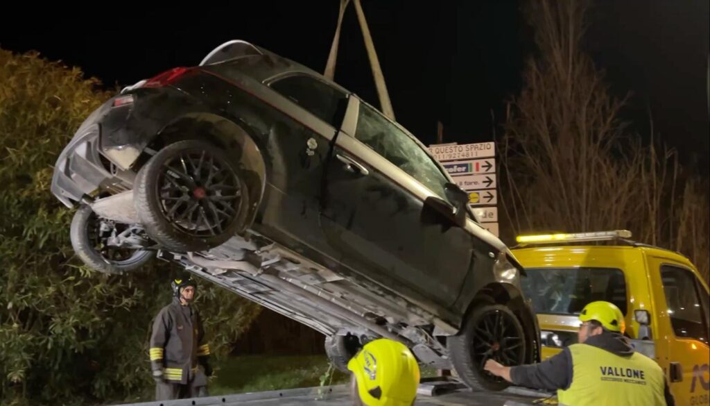 Ladro inseguito fugge a folle velocità sulla SS16, l’auto precipita in un canale