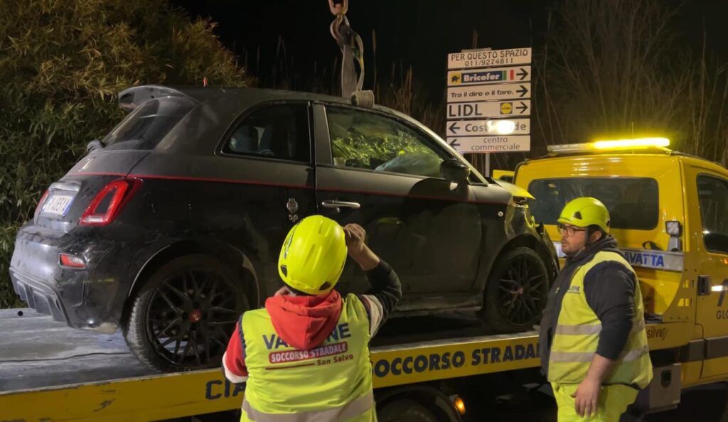 Di fronte all’alt dei militari, il ladro ha schiacciato il piede sull’acceleratore nel tentativo di dileguarsi. È iniziato così un inseguimento, che è terminato quando il fuggitivo ha perso il controllo della vettura, che ha terminato la sua folle corsa finendo dentro un canale che si snoda parallelamente alla carreggiata.