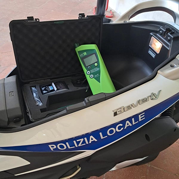 Il dispositivo scelto è un apparecchio palmare a raggi infrarossi, dotato di stampante bluetooth e accessori, in grado di fornire risultati con precisione probatoria. Uno strumento pensato per essere maneggevole, resistente e facilmente utilizzabile durante i controlli su strada, anche in condizioni operative complesse.