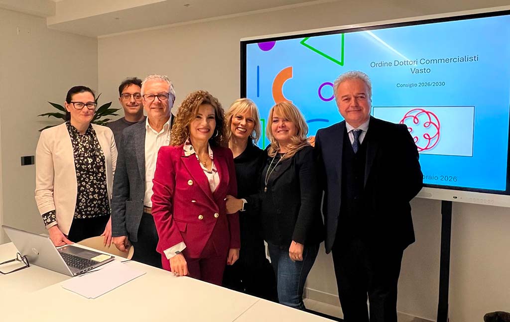 Si è insediato ieri, 24 febbraio, il nuovo consiglio dell’Ordine dei dottori commercialisti e degli esperti contabili di Vasto per il mandato 2026-2030. Alla guida dell’Ordine è stata eletta la presidente Luciana Cunicella, affiancata dall’ufficio di presidenza composto da Claudio de Nicolis (vicepresidente), Paola Valentini (segretaria) e Filippo D’Angelo (tesoriere), Maria Lucia D’Alessandro, Eleonora Daniele e Antonio Pietro Di Lello.