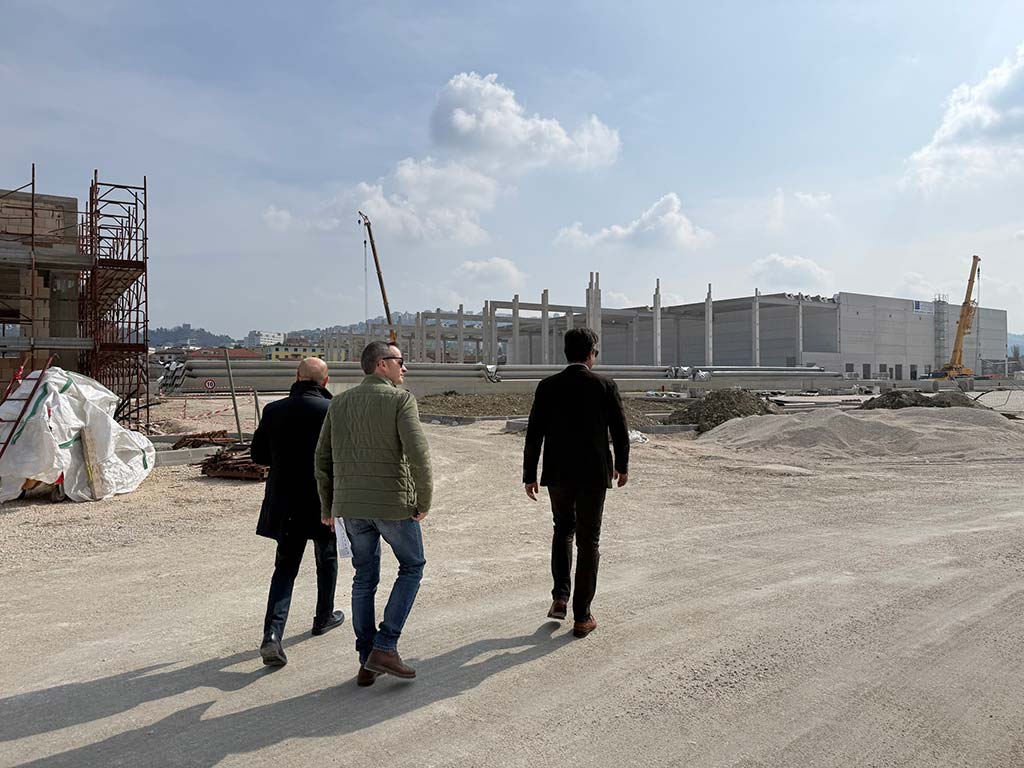 Proseguono a Chieti Scalo i lavori per la realizzazione del grande centro logistico Eurospin. Stamattina il sindaco Diego Ferrara – insieme al vicesindaco Paolo De Cesare e all’assessore Manuel Pantalone – si è recato sul posto per un sopralluogo al cantiere; gli amministratori comunali sono stati guidati da Stefano Gatto, coordinatore Sviluppo immobiliare Eurospin in Abruzzo, e Stefano Dal Pozzo, direttore dei lavori. Il futuro centro logistico sorgerà sul sito dell’ex Cartiera Burgo in un’area da 120mila metri quadrati, di cui 40mila coperti.