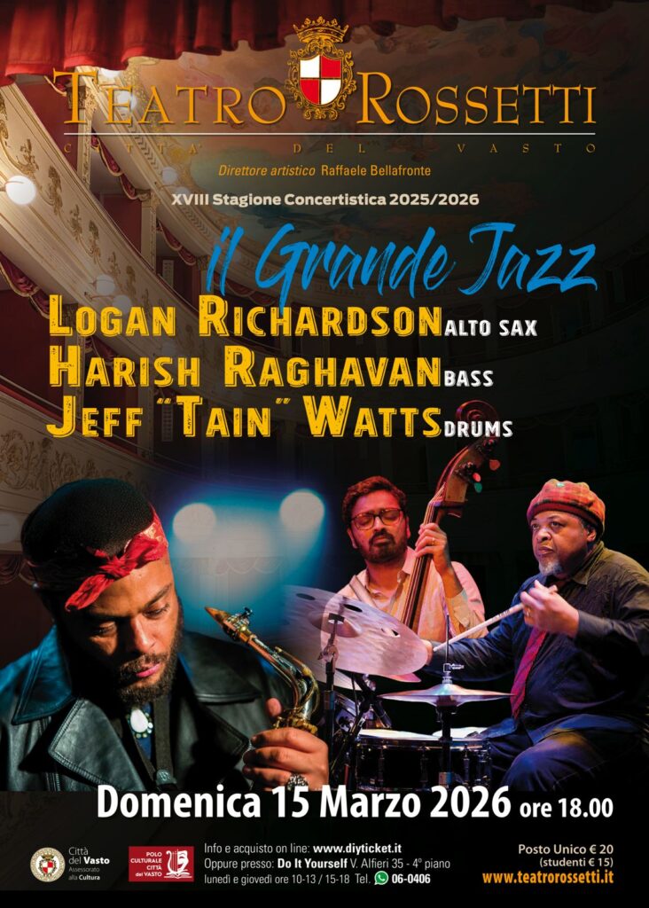 «Lo spettacolo – si legge in un comunicato del municipio – vedrà protagonista il trio formato da Logan Richardson (alto sax), Harish Raghavan (contrabbasso) e Jeff Tain Watts (batteria). Nativo di Kansas City, Missouri, classe 1980, Logan Richardson è da anni uno degli alto sassofonisti più innovativi della scena jazz internazionale. Il suo linguaggio musicale caratterizzato da un approccio non convenzionale e da una forte coerenza espressiva lo ha portato a distinguersi sin dagli esordi nell’area più avanzata del post-bop contemporaneo, collaborando con tanti musicisti».