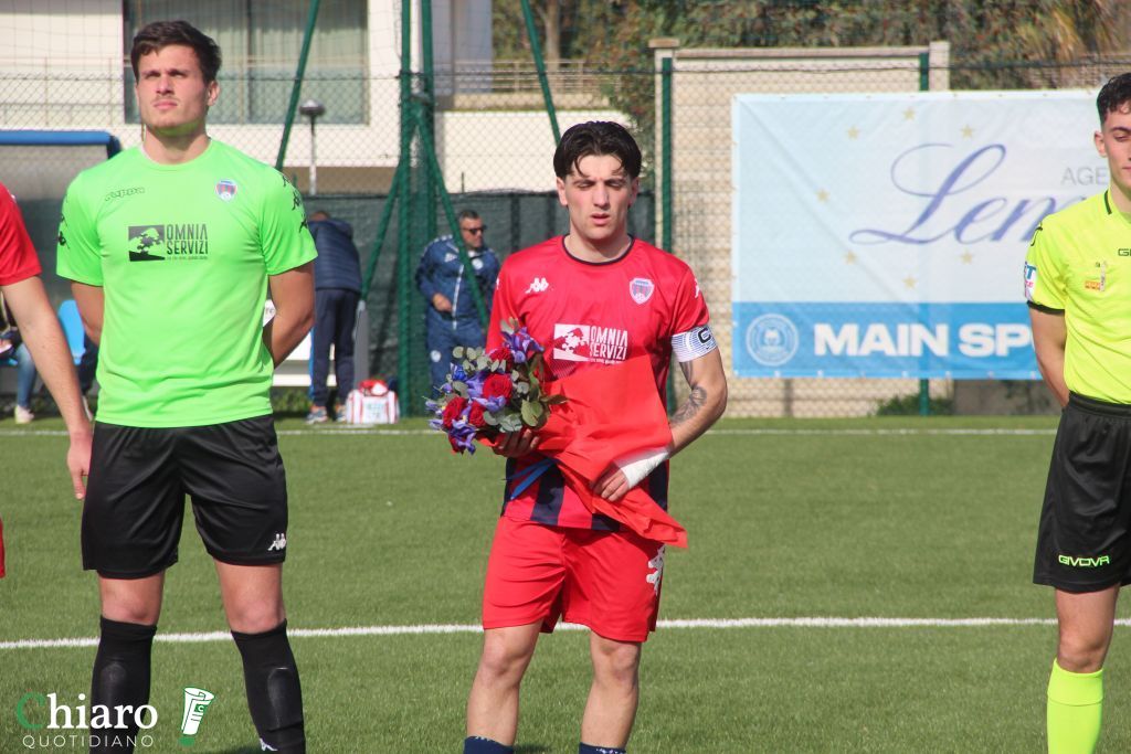 La partita – Tra assenze forzate e scelte tecniche l’allenatore Di Simone rivoluziona l’undici iniziale cambiando ben quattro pedine rispetto alle due precedenti uscite. In porta si rivede l’under Sciammarella, nel terzetto difensivo non c’è Cahais, spazio a Garofalo con il primo ex, Ancinelli e Farucci. Laterali Vespasiano e Muratore, nel cuore del gioco riecco Morasca con la fascia di capitano al braccio insieme a Irace e Urbano. In avanti attacco leggero, spazio a Finizio e Hajdarevic, manca un vero centravanti viste le non perfette condizioni fisiche di Cellucci. Neanche in panchina Manara, out per infortunio. Non cambia nulla mister Di Francesco che conferma in blocco gli uomini che hanno centrato l’impresa contro la vicecapolista Angolana. Tra i pali c’è Di Cencio, terzetto difensivo guidato da De Min con Sebastiani e Carlucci, laterali Zaccardi e capitan Troiano. In mediana Macarof è il play con le mezzali Capitanio e Minchillo, in avanti l’ex Stivaletta con Cissé. Prima del fischio d’inizio il capitano dei cupellesi, Nico Troiano, ha deposto un mazzo di fiori, in ricordo del presidente biancazzurro Iammarino.