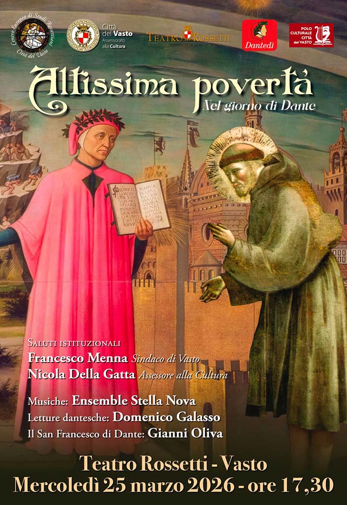«Quella di quest’anno dunque è un’occasione speciale per ricordare, invece, con gli occhi di Dante, la vita e il messaggio di San Francesco, la sua capacità di aver cambiato il corso della storia con la sua dedizione alla povertà, alla carità e alla pace, temi decisamente declamati ma poco frequentati in questi anni dominati dall’arroganza, dall’avidità e dall’ignoranza – aggiunge l’assessore alla Cultura e al Turismo Nicola Della Gatta – Ricordare Dante significa restituire un ritratto di San Francesco basato sul suo amore per la povertà, per l’umiltà, valori oggi sempre più trascurati. Il canto XI del Paradiso, dedicato a San Francesco, è un canto di commossa e candida poesia, in cui Dante esprime il suo misticismo profetico e la sua riconoscenza verso chi predicò il Vangelo e l’amore».