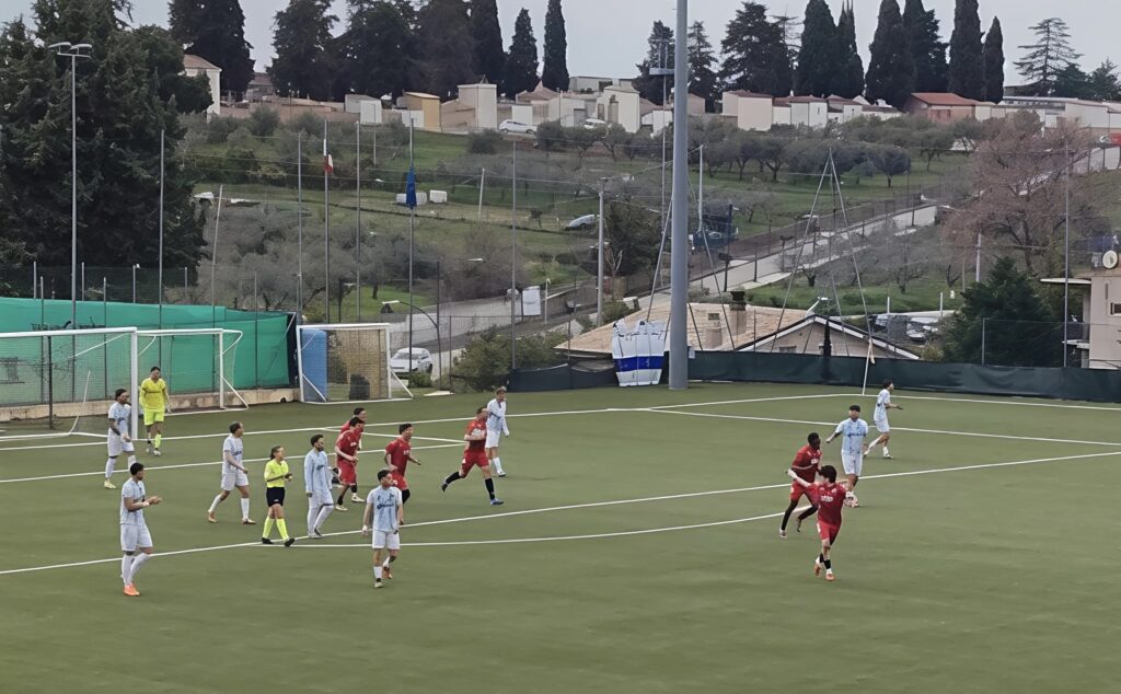 Dopo una buona partenza dei rossoblù, al diciannovesimo è il San Salvo a sbloccare il match con il “solito” implacabile Ortiz Lopez che servito da Di Pierro non sbaglia e firma il suo quarto gol consecutivo (quinto in appena sette presenze). A cinque minuti dal quarantacinquesimo Asia Armaroli punisce i biancazzurri, fallo su Zaccardi e calcio di rigore tra le grandi proteste degli ospiti. Dagli undici metri va lo specialista Stivaletta che non sbaglia, bissa il gol dell’andata e sale a quota 15 nella classifica dei bomber. Poco prima di rientrare negli spogliatoi altra occasione per i padroni di casa ma Capitanio non è lucido.