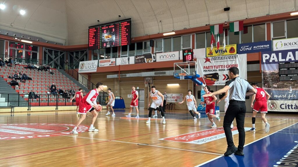 Nella prima frazione i biancorossi, affidandosi ai big Laffitte e Oluic (due triple) provano a staccare l’Amatori che riesce a restare in scia con i primi dieci minuti che si chiudono sul +5 (18-13). Nel secondo quarto ancora i vastesi con più idee ed energie, Mascoli insacca due bombe, entra in gioco anche Gauzzi con Massotti che quattro dalla fine dei primi venti minuti firma il massimo vantaggio (+12: 38-26) ma, i pescaresi con i 4 punti di Tusuni riescono ad accorciare e si rientra negli spogliatoi sul 38-30.
