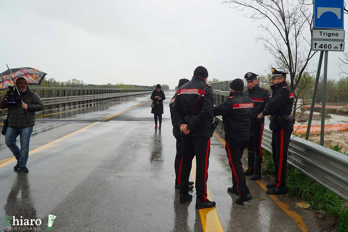 Gli unici elementi del ponte che non si sono spezzati sono i due corrimano dei guardrail di entrambe le corsie e una manciata di cavi. Tutto il resto è finito in acqua. Entrambi i monconi del viadotto crollato sono presidiati dalle forze dell’ordine: sul lato abruzzese carabinieri e polizia locale di San Salvo, sulla sponda molisana vigili del fuoco e polizia locale. Gli agenti municipali di Montenero di Bisaccia erano transitati sul ponte pochi minuti prima del collasso della struttura. Non possono escludere che qualche automobilista sia passato anche dopo l’apposizione del divieto di transito: da verificare, quindi, l’eventuale coinvolgimento di auto nel crollo.