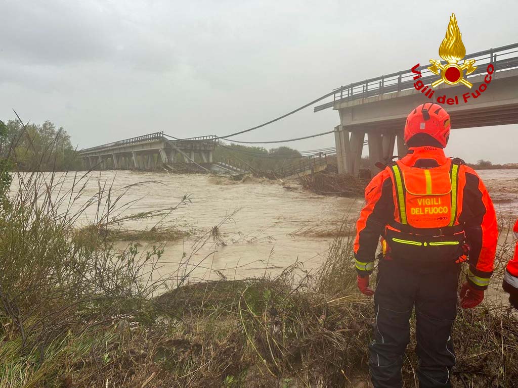 «Stiamo perlustrando tutte le aree possibili – ha detto Tripi – L’incertezza sulla dinamica dell’accaduto renda necessario ampliare il raggio delle ricerche. Non è infatti chiaro quanto tempo l’auto possa essere rimasta a galla prima di inabissarsi, un elemento che impedisce di restringere con precisione la zona di intervento. Le operazioni in acqua, tuttavia risultano al momento limitate. La forte corrente del fiume, ancora in piena, non consente agli operatori di immergersi in sicurezza. Oltre alla velocità delle acque, rappresentano un pericolo concreto anche i numerosi detriti trasportati dalla corrente, alcuni dei quali visibili e incastrati nella struttura del ponte crollato. Per questo motivo, in questa fase si lavora soprattutto da terra e con il supporto di mezzi tecnologici, come i sonar per l’esplorazione dei fondali. Parallelamente è in corso un’intensa attività di perlustrazione via mare, resa possibile grazie al coordinamento tra più enti. Accanto ai vigili del fuoco operano infatti la capitaneria di porto e la guardia di finanza, con mezzi navali e aerei».