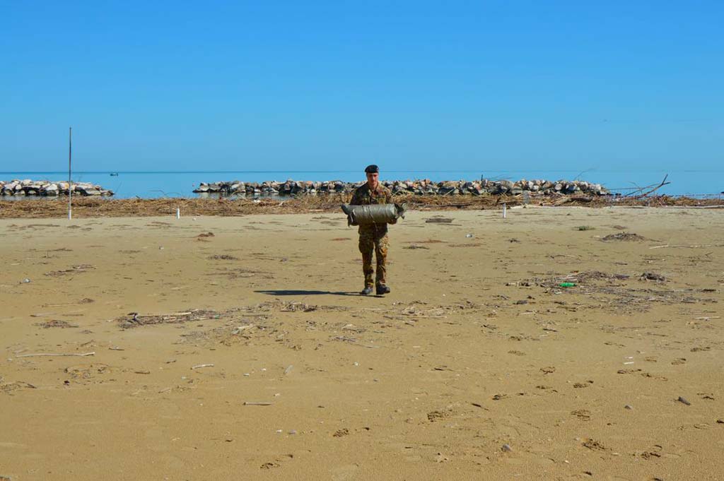 Gli artificieri dell’11° Reggimento genio guastatori sono intervenuti questa mattina sulla spiaggia di San Salvo per mettere in sicurezza e rimuovere un residuato bellico rinvenuto nei giorni scorsi. Le piene dei fiumi, in particolare del Trigno, hanno portato sulle rive rifiuti di ogni genere, tra i quali due sospetti ordigni bellici a causa dei quali la sindaca Emanuela De Nicolis ha firmato un’ordinanza di divieto di accesso alla spiaggia.