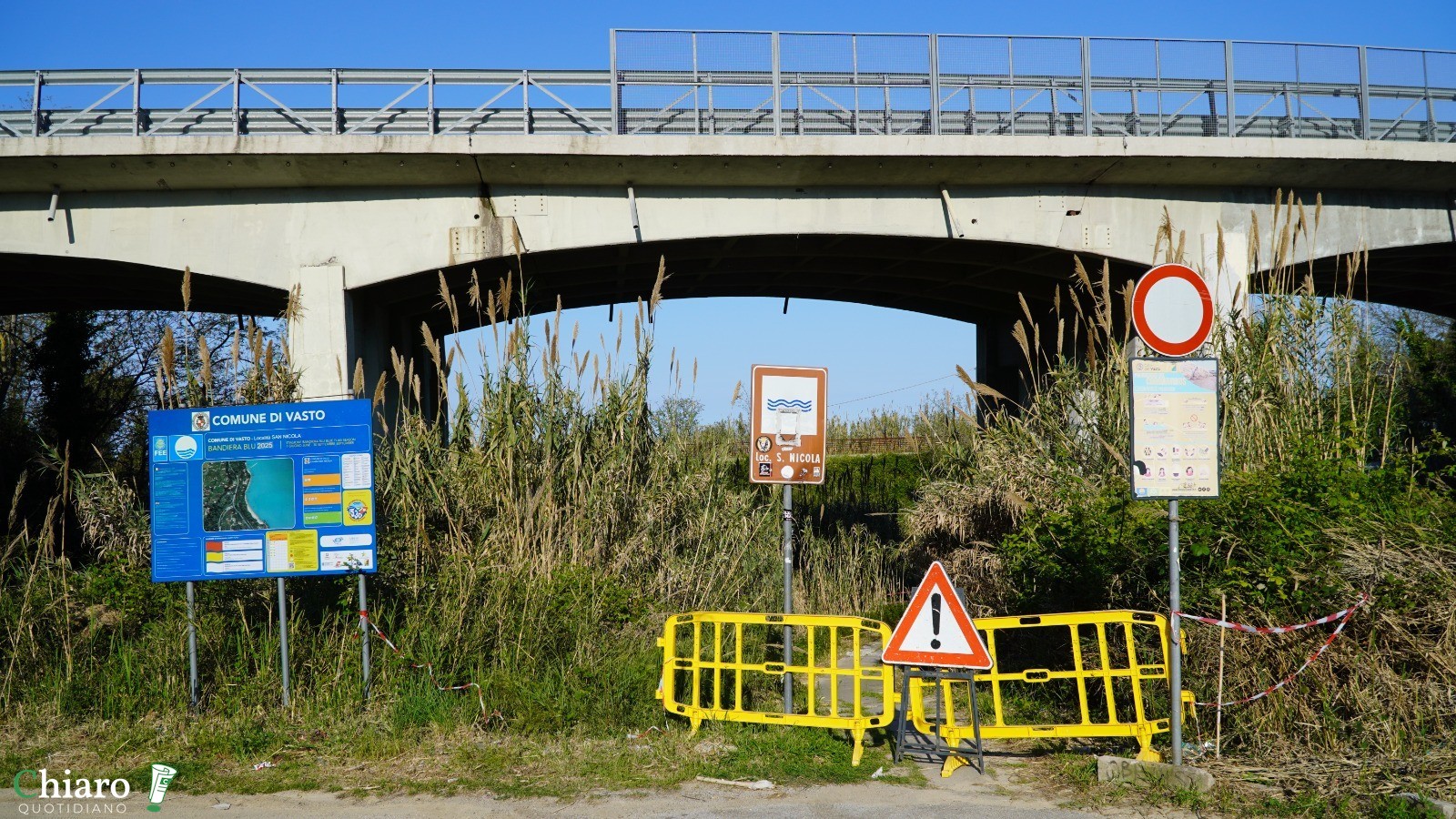 Al momento, quindi, la spiaggia di San Nicola resta accessibile soltanto dalla Via Verde della Costa dei Trabocchi, la pista ciclopedonale litoranea, mentre non è più possibile raggiungerla dal parcheggio attraverso il sentiero che passa trasversalmente sotto il viadotto.