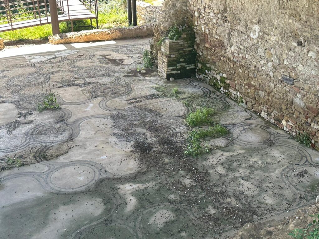 Erbacce che crescono tra i mosaici, guano sulle superfici che una volta erano vasche termali: è l’immagine che arriva dalle Terme Romane di Vasto, uno dei luoghi simbolo dell’antica Histonium. A documentare la situazione sono alcune foto inviate a Chiaro Quotidiano da un lettore, che mostrano in particolare il mosaico del Nettuno, la composizione musiva più rilevante del sito archeologico. Tra vegetazione spontanea e sporco accumulato, i dettagli dell’opera risultano in parte coperti, rendendo evidente la necessità di un intervento di pulizia e manutenzione.