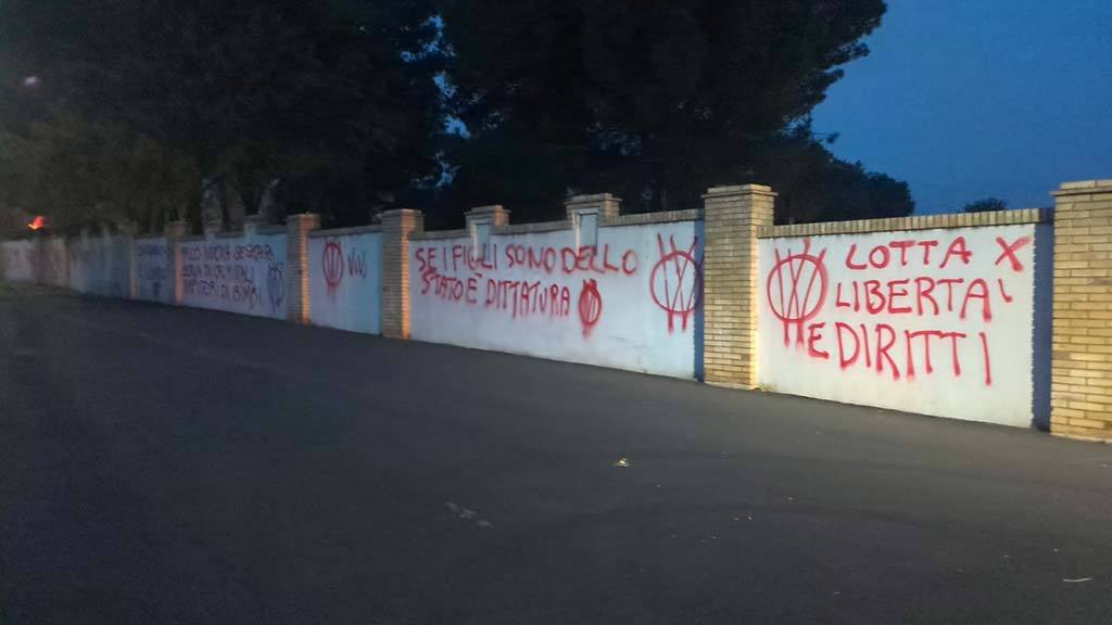 I vandali sono entrati in azione in via Incoronata (sul lungo muro di cinta della parrocchia che dà il nome al quartiere dove si trova la struttura protetta “Genova Rulli”), in via Bachelet sul muro di cinta del commissariato di polizia e sulle pareti della scuola “Martella”, sulle mura della sede dell’assessorato al Welfare e all’Inclusione sociale.