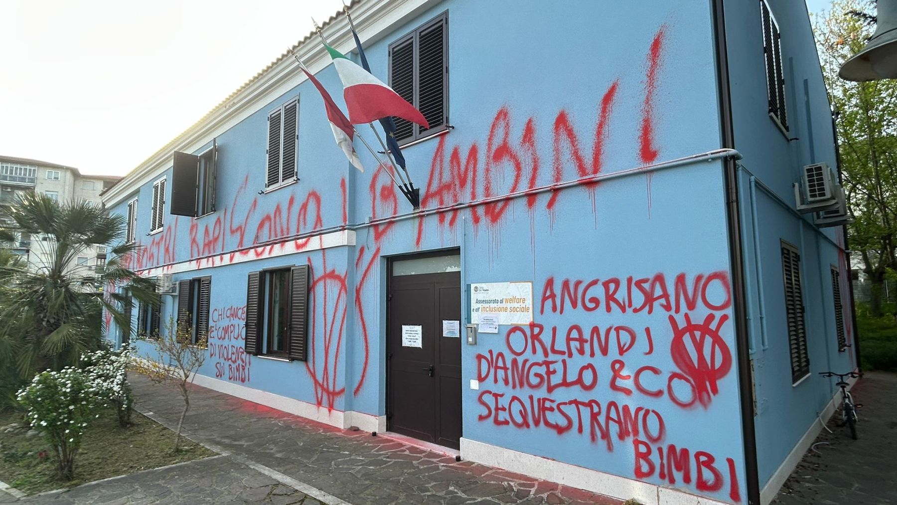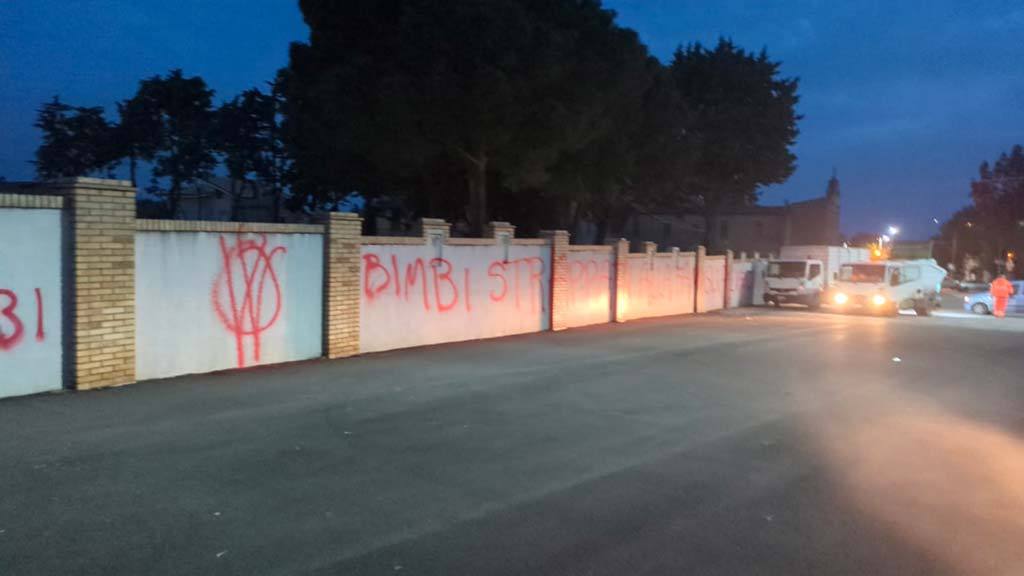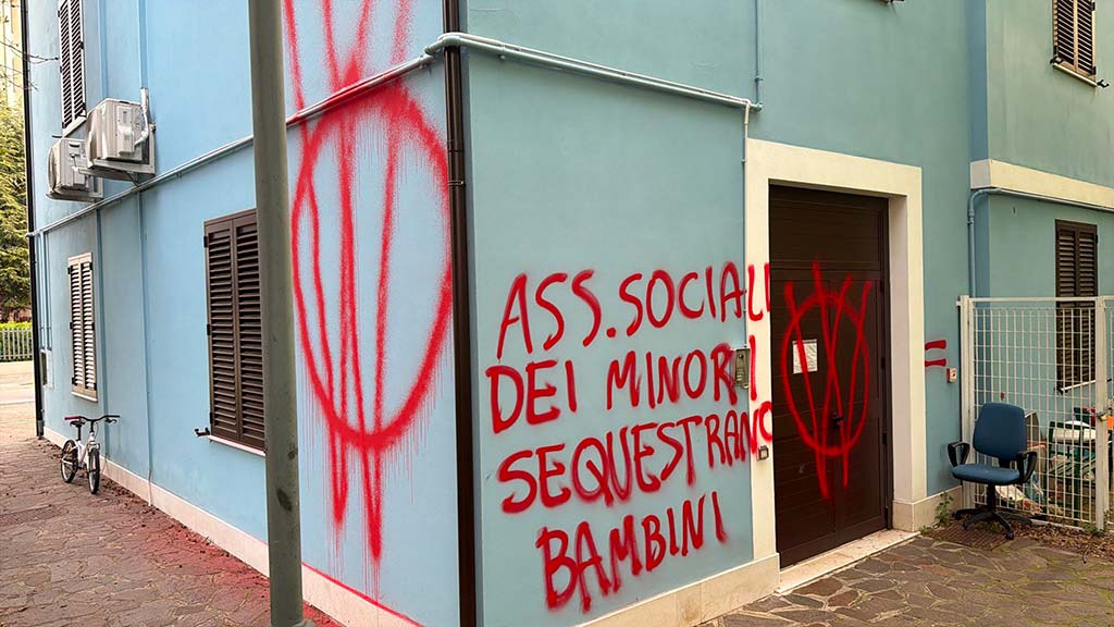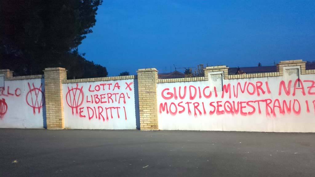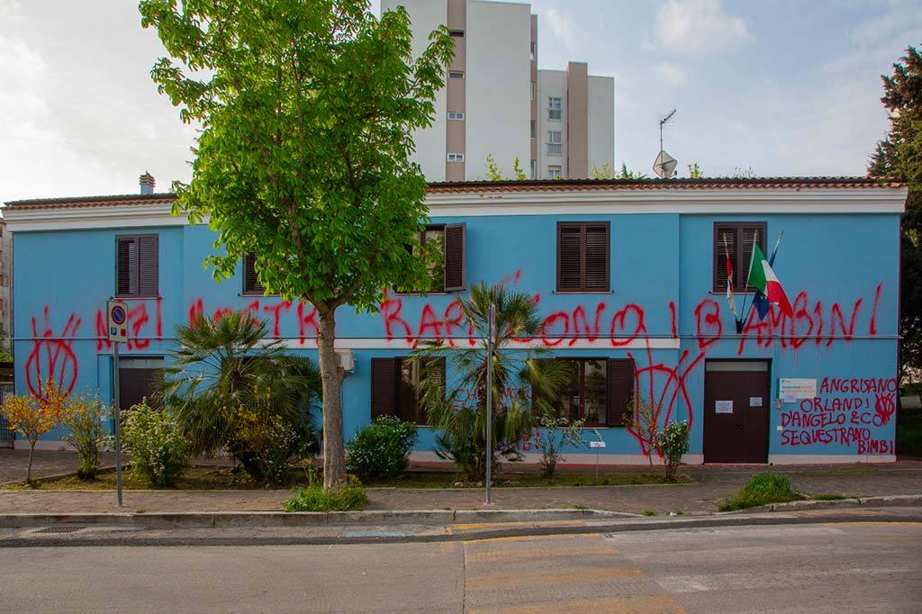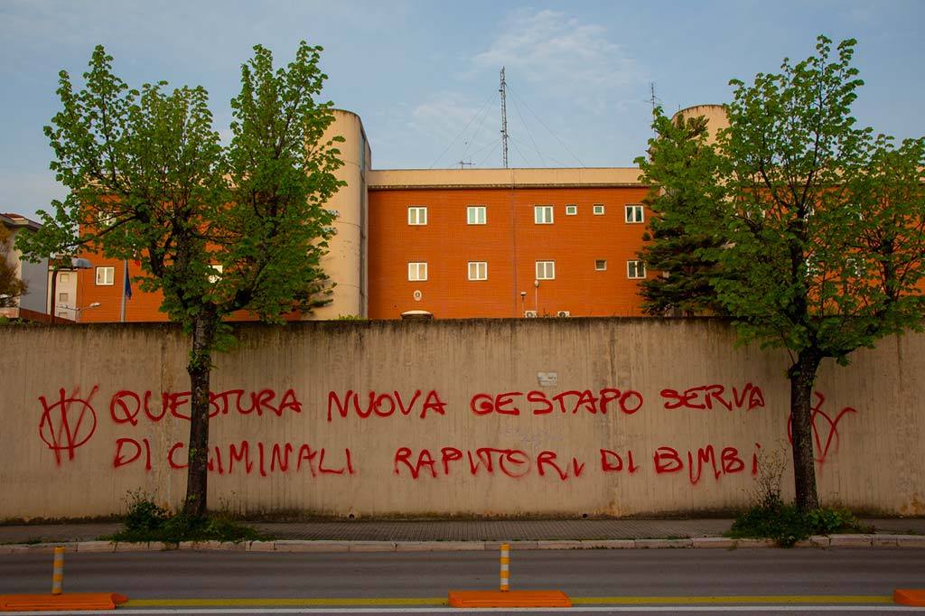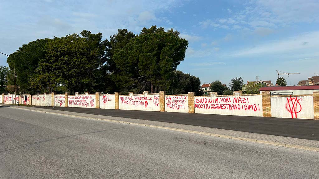 “Se i figli sono dello Stato, è dittatura”, “Bimbi strappati alla famiglia”, sono solo alcune delle scritte e delle offese scritte con vernice spray sulle pareti di diversi edifici di Vasto. È il raid notturno di anonimi imbrattatori per la “Lotta per libertà e diritti”. Nelle scritte c’è il riferimento al caso della coppia Birmingham-Trevallion.