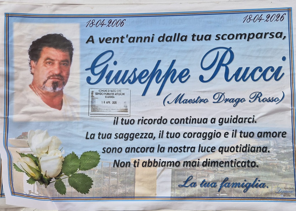 Da parenti e amici di Giuseppe Rucci, noto ai vastesi con lo pesudonimo di Drago Rosso, riceviamo e pubblichiamo questo testo nel decennale della scomparsa del noto maestro di arti marziali.