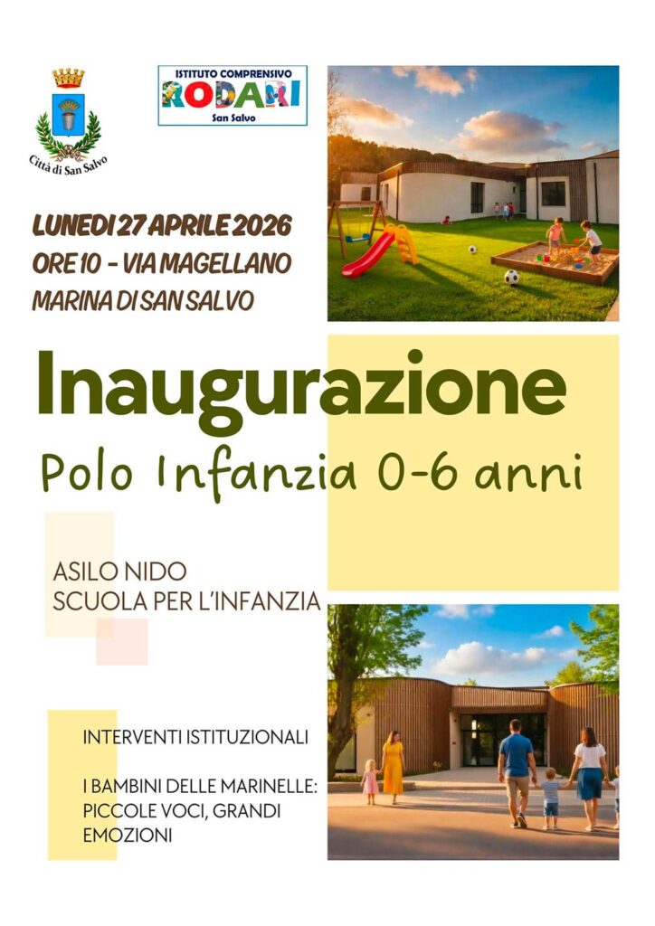 Lunedì 27 aprile, a San Salvo Marina, sarà inaugurato il nuovo polo scolastico 0-6 di via Ferdinando Magellano. L’opera è stata realizzata grazie al finanziamento di 2.560.800 euro dal Pnrr.