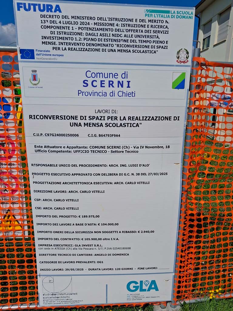 A Scerni partiti i lavori per la nuova mensa scolastica, progetto da 190mila euro