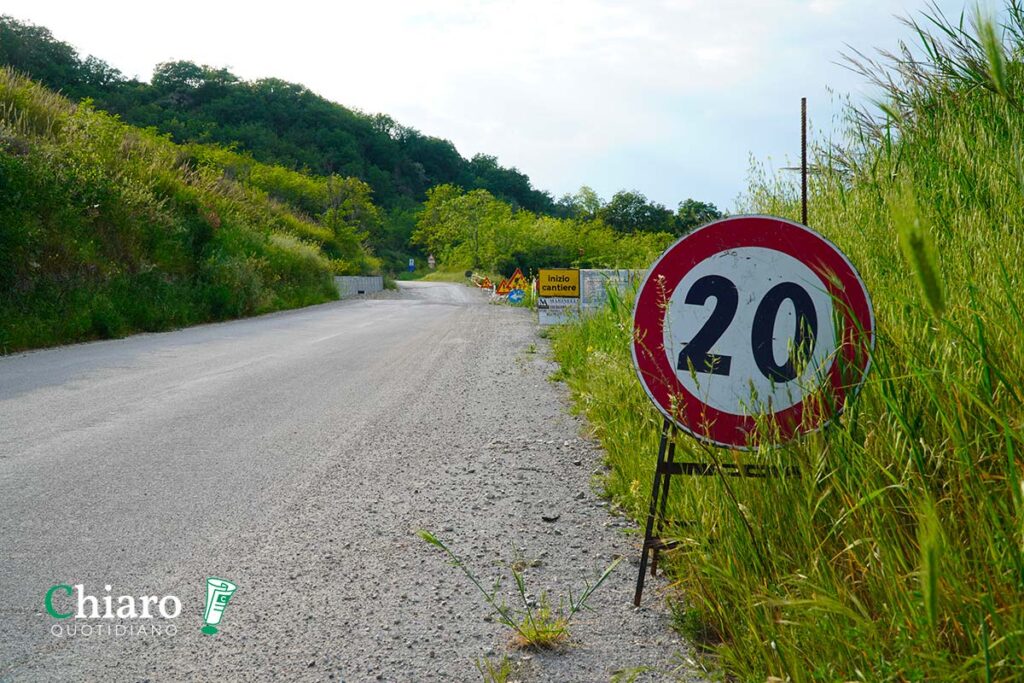 Invece, da quel giorno di oltre due anni fa, è iniziato un autentico calvario per questa importante strada di collegamento. I lavori per 240mila euro, aggiudicati dalla M.A. Marinelli Group, sono stati caratterizzati da stop, riprese e nuovi stop. Prima una perizia di variante che ha allungato i tempi di 7 mesi, poi difficoltà nel reperire i materiali, poi intoppi di natura tecnica nella realizzazione dei pali. Dopo l’interrogazione dell’allora minoranza provinciale, è stata indicata una nuova data di fine interventi, quella del 26 settembre 2025, passata ormai da tempo [LEGGI].