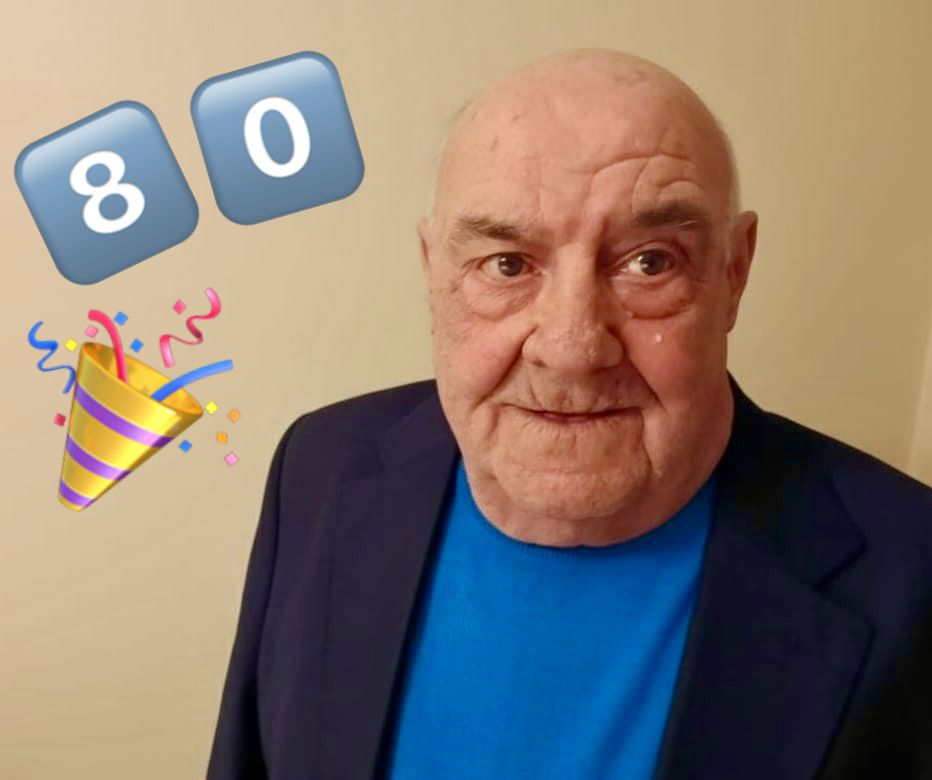 Ottanta candeline sulla torta di Cesario Cinquina. «Ottant’anni di risate e saggezza… Buon compleanno, Cesarino!!! Sei la nostra roccia!! Ti vogliamo bene! Con affetto. La tua famiglia».