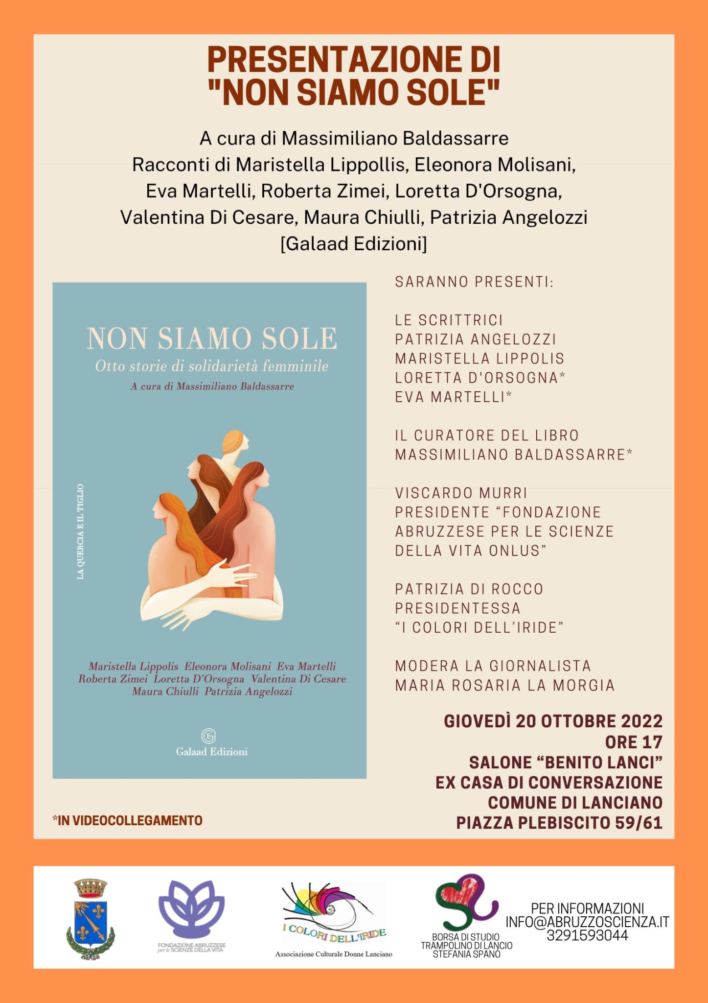20ott17:00Presentazione del libro "Non Siamo Sole"Lanciano, Salone d'Onore "B.Lanci" ex Casa di Conversazione