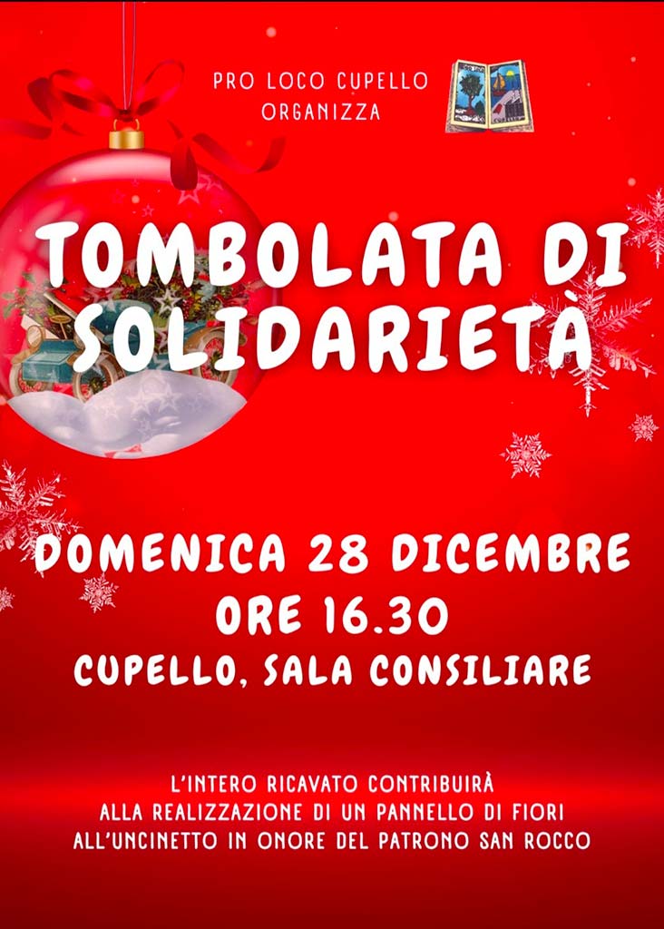 28dic16:30Tombolata di solidarietàCupello - Sala consiliare