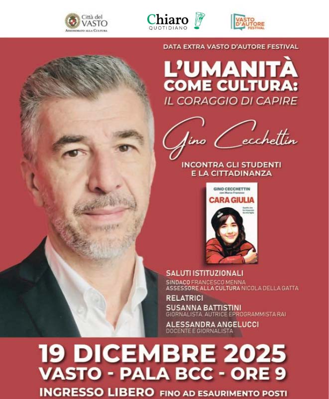 Cultura «Cara Giulia»: Gino Cecchettin il 19 a Vasto d’autore per ricordare sua figlia, uccisa a 22 anni Vasto - 12 Dicembre 2025