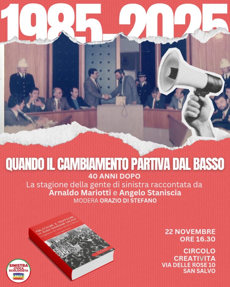 In breve “Politiche e pratiche di buon governo locale”, a San Salvo la presentazione del libro di Staniscia San Salvo - 20 Novembre 2025
