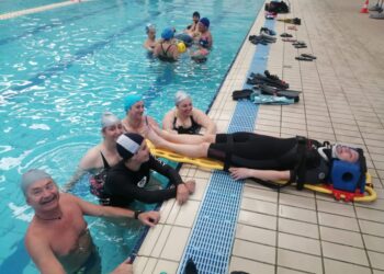 Dopo la parte teorica in aula, nelle vasche della piscina comunale il secondo passaggio