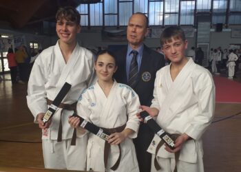 I tre giovani guidati dal maestro Sandro Celenza della Zoku Torres Karate Vasto